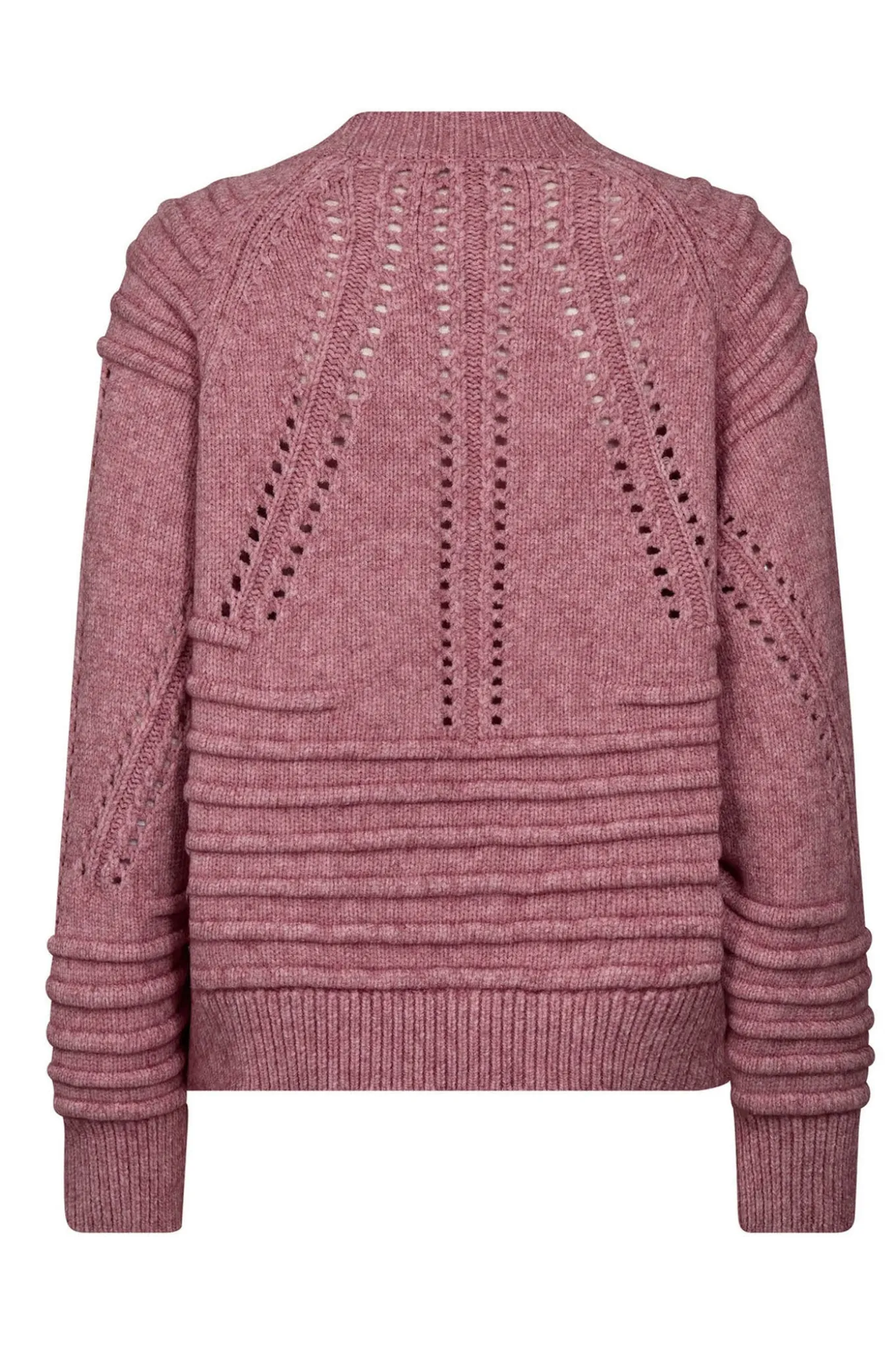 Forkæl dig selv med denne bløde og feminine striktrøje fra Co’couture. Den skønne candyfloss farve kombineret med det bløde materiale af acrylic, polyester og polymide, gør den perfekt til en varm og trendy påklædning.