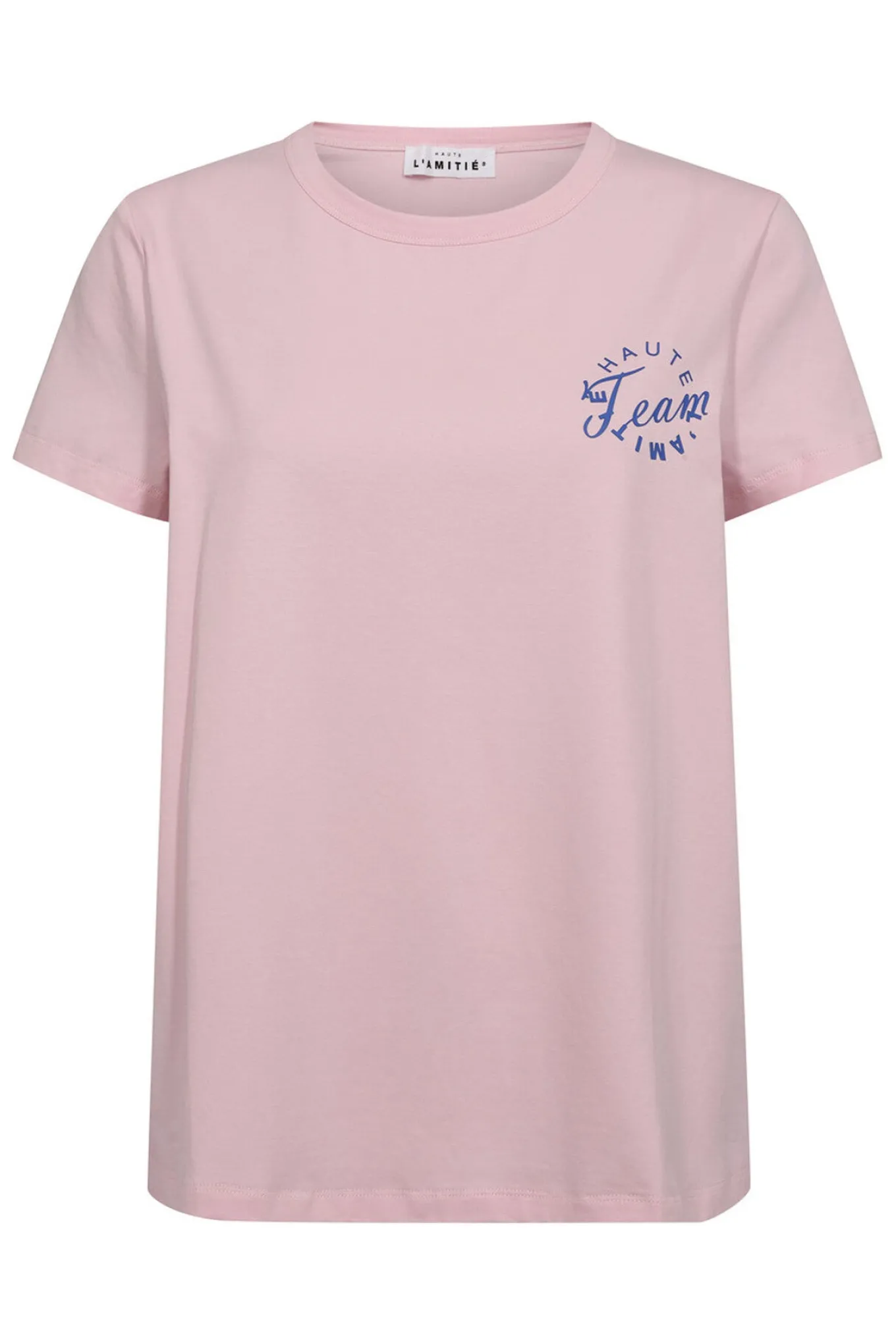 OBS! Fjernlager. Levering kan blive forlænget med 2-3 dage, hvis varen ikke findes i vores butik lige nu.Smart tee fra Haute L’Ámitié med korte ærmer, rund hals og et fint lille print på brystet.