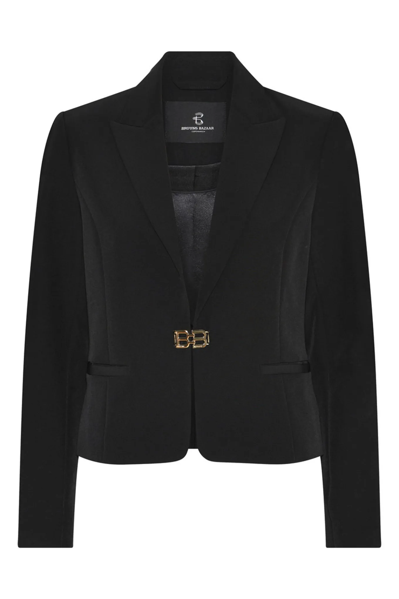 Elegant og tidløs blazer fra Bruuns Bazaar Women i klassisk sort. Fremstillet af 50% genanvendt polyester og 46% P, denne blazer er perfekt til enhver lejlighed.