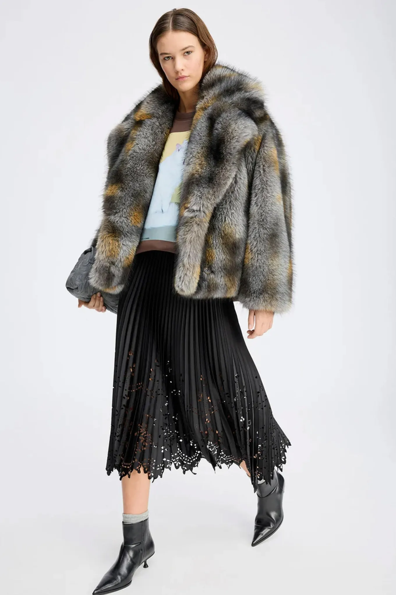 legant plisseret nederdel med smukke laserskårne detaljer. Designet med en elastisk talje prydet med et diskret MUNTHE-logo.