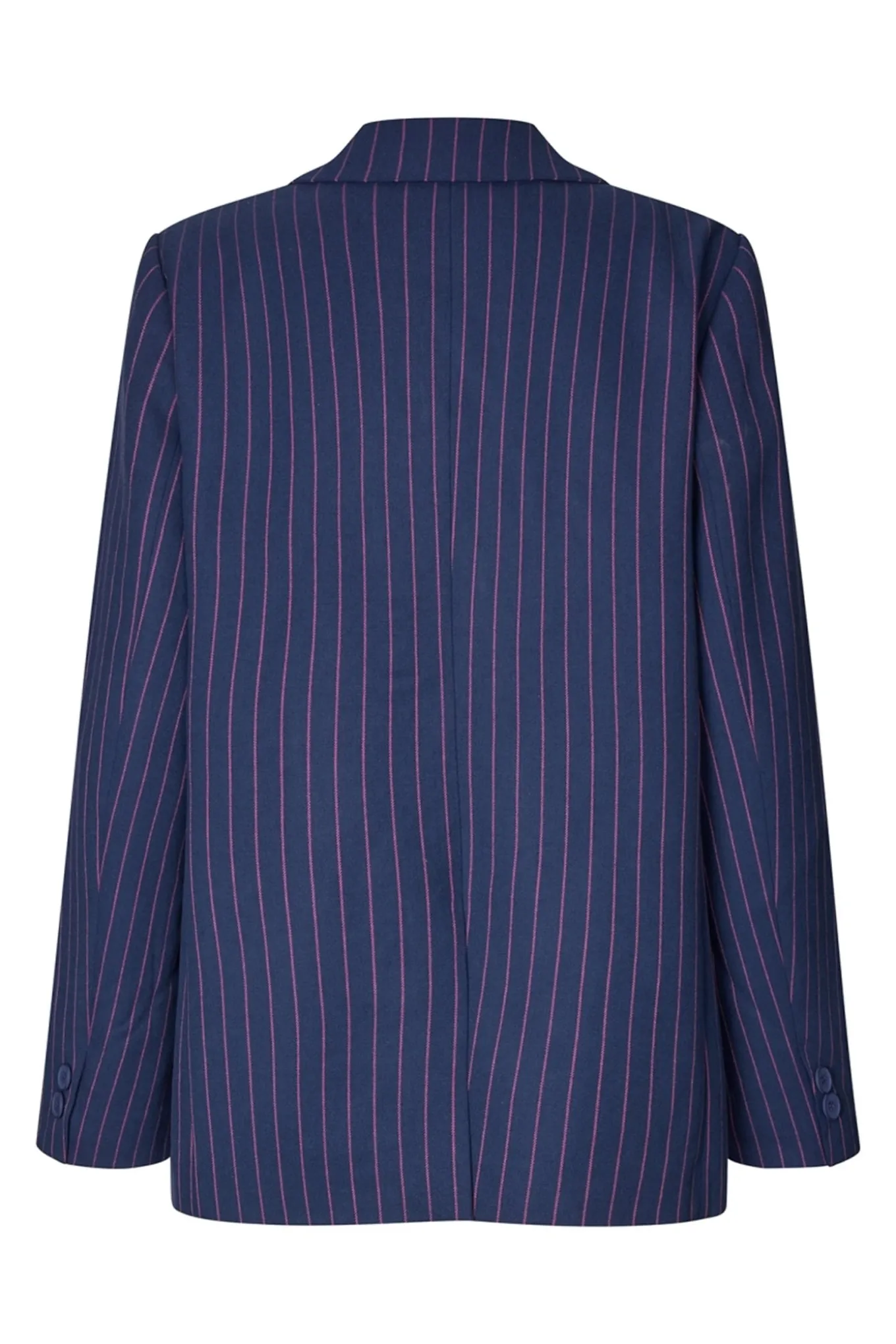 Denne elegante blazer i en dyb mørkeblå farve er det perfekte valg til enhver anledning. Fremstillet af en blanding af polyester og viskose, er den både komfortabel og stilfuld. Fra Lollys Laundry.