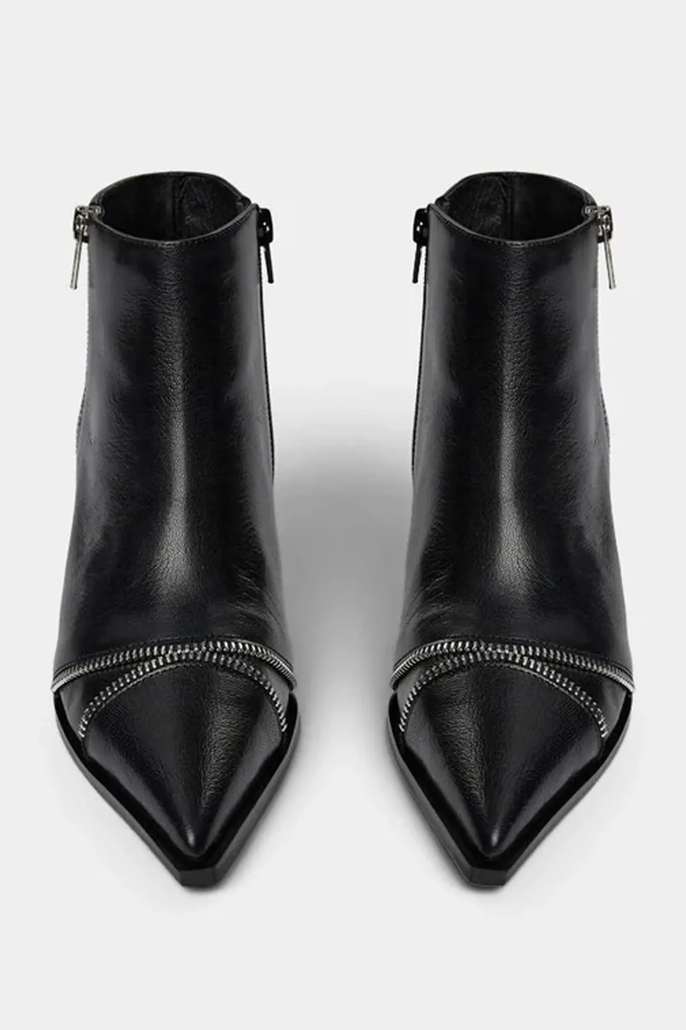 Flotte læderstøvler fra Sofie Schnoor med elegante lynlåsdetaljer over foden, lynlåslukning i siden og en smal hæl.