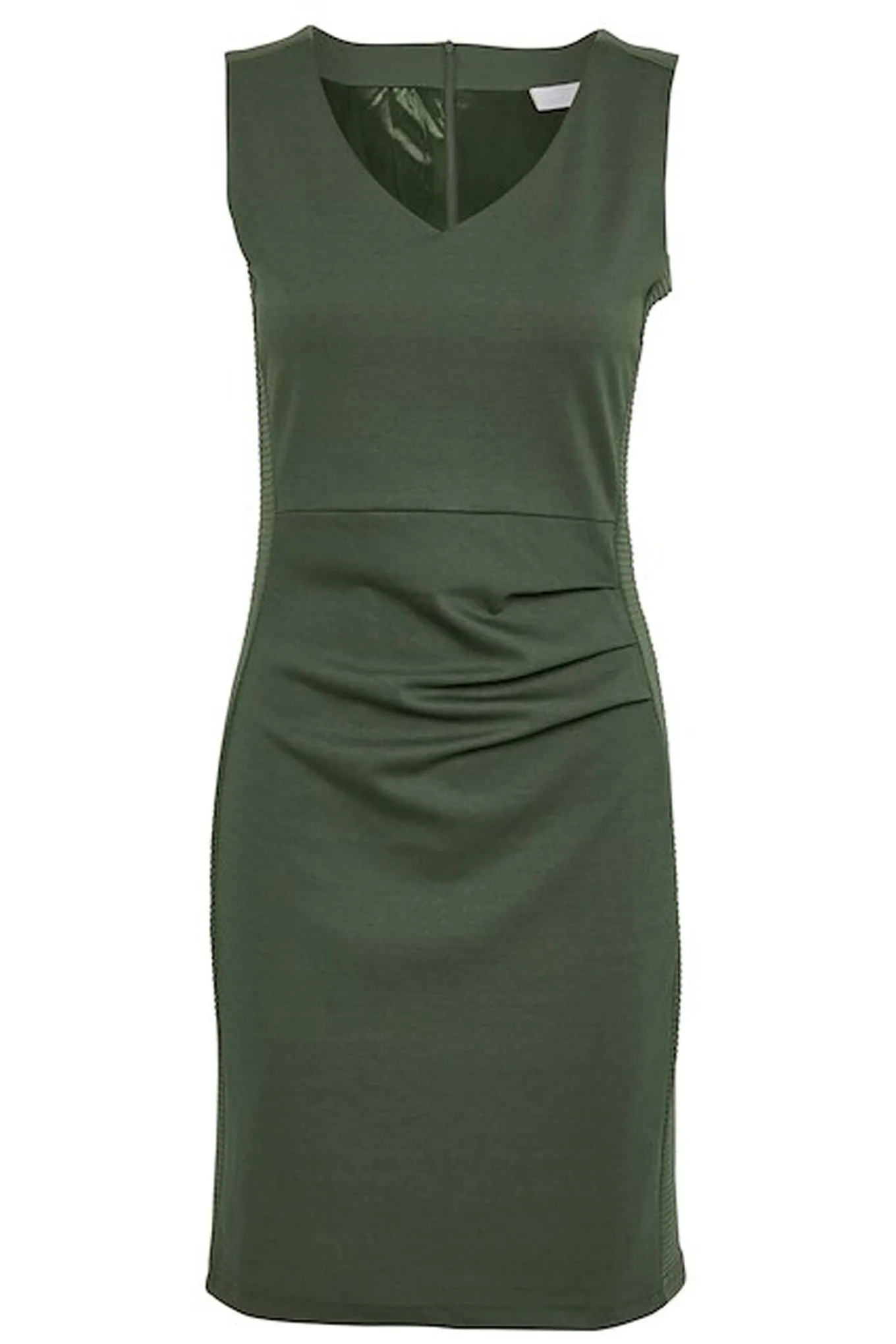 OBS! Fjernlager. Levering kan blive forlænget med 2-3 dage, hvis varen ikke findes i vores butik lige nu.Smuk kjole fra Kaffe med en blød v-udskæring i halsen, en tætsiddende pasform og flotte draperet effekter.