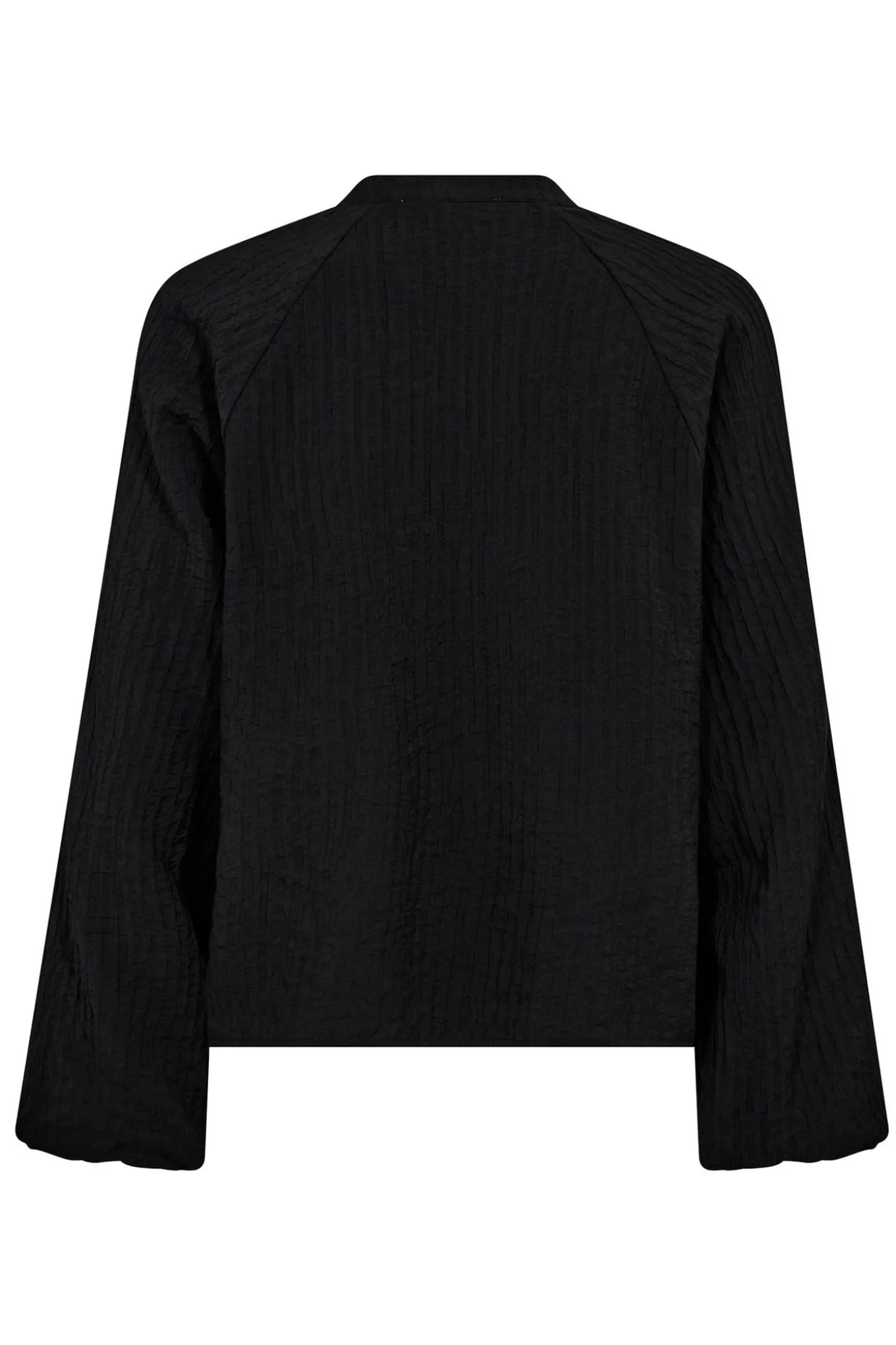 Få et elegant og feminint look med denne smukke skjorteluse fra CO’COUTURE. Blusen har et flot lace-design og er lavet i en lækker sort farve.