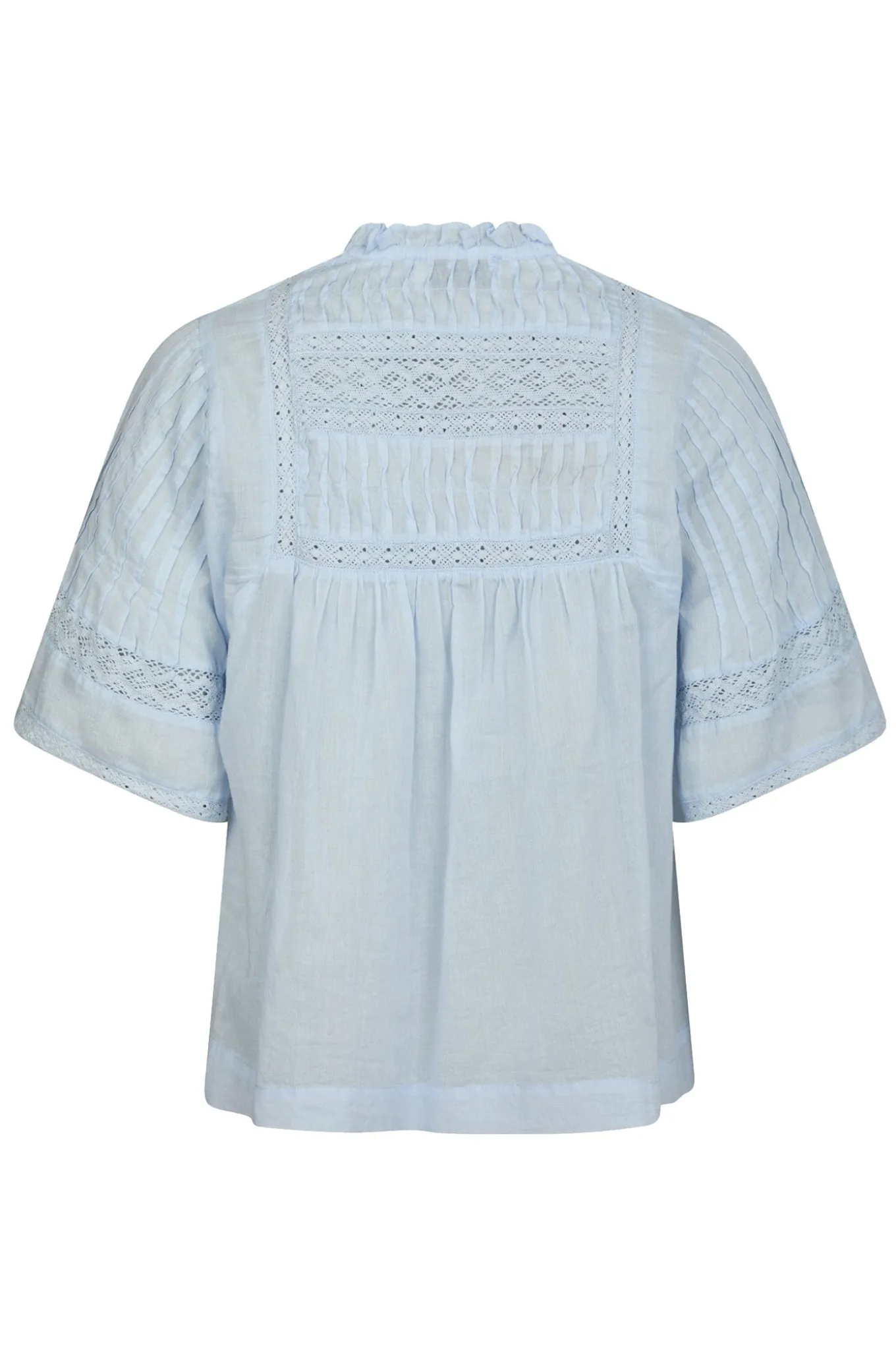 Feminin bluse fra Neo Noir med ½ lange flæseærmer, rund hals med v-udskæring og de smukkeste broderet detaljer.