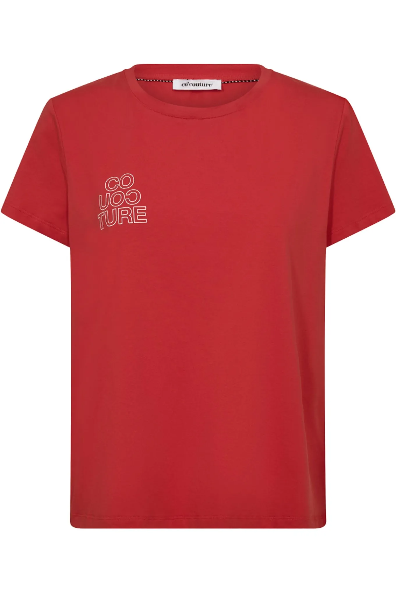 OBS! Fjernlager. Levering kan blive forlænget med 2-3 dage, hvis varen ikke findes i vores butik lige nu.Smart tee fra Co’couture med korte ærmer, rund hals og en fin detalje på brystet.