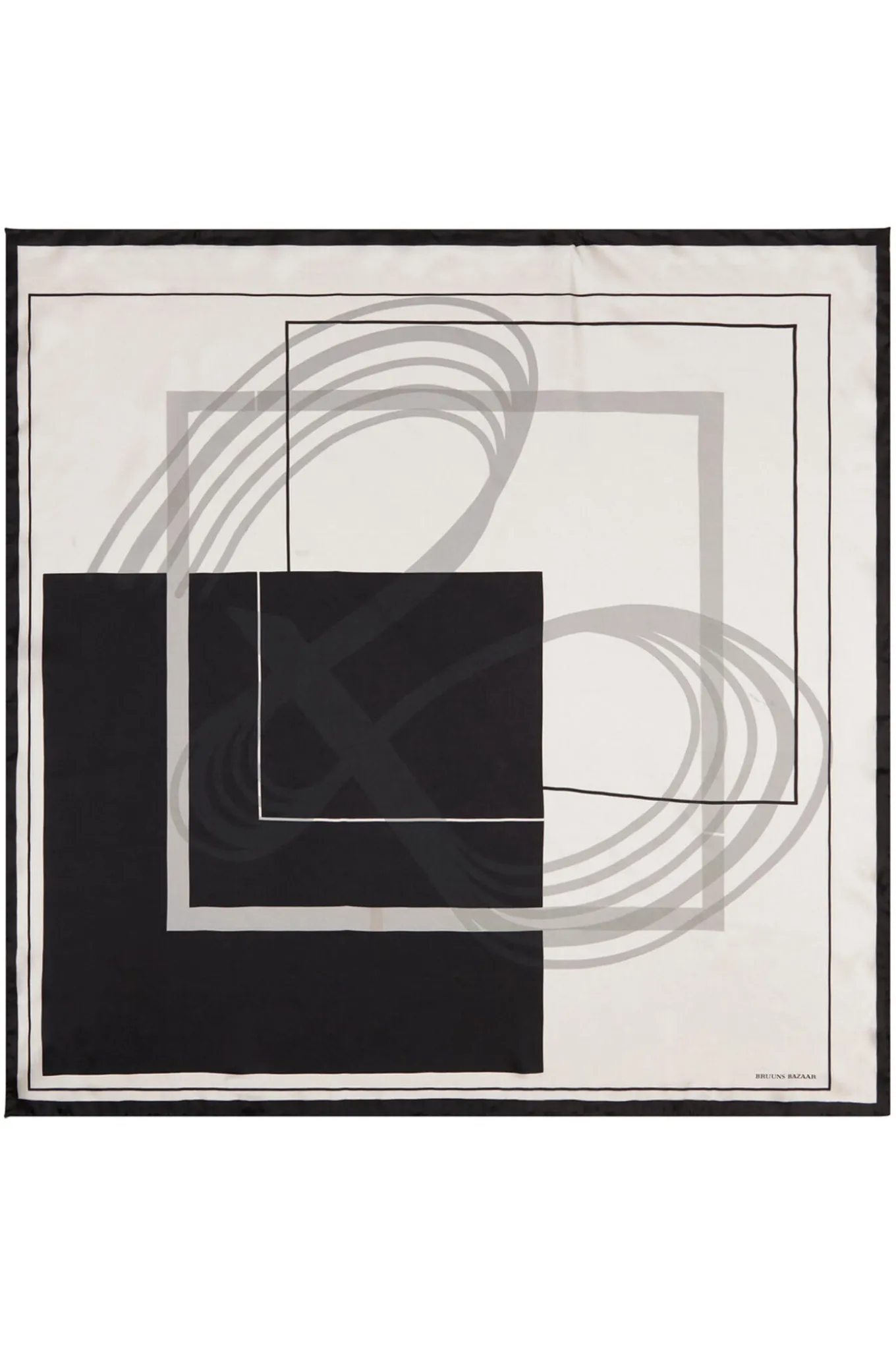 - OBS! Fjernlager. Levering kan blive forlænget med 2-3 dage, hvis varen ikke findes i vores butik lige nu.Smukt silke tørklæde fra Bruuns Bazaar med et flot grafisk print.