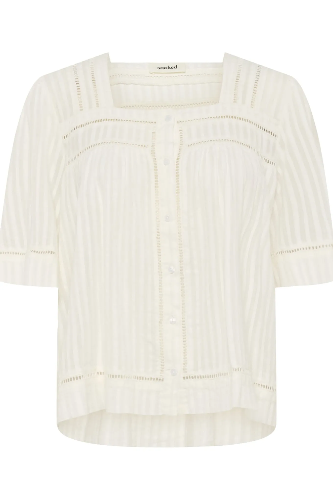 Opdater din garderobe med denne lækre bluse fra Soaked in Luxury. Den er i den smukke nuance Broken White og lavet af 100% bomuld. Perfekt til enhver lejlighed.