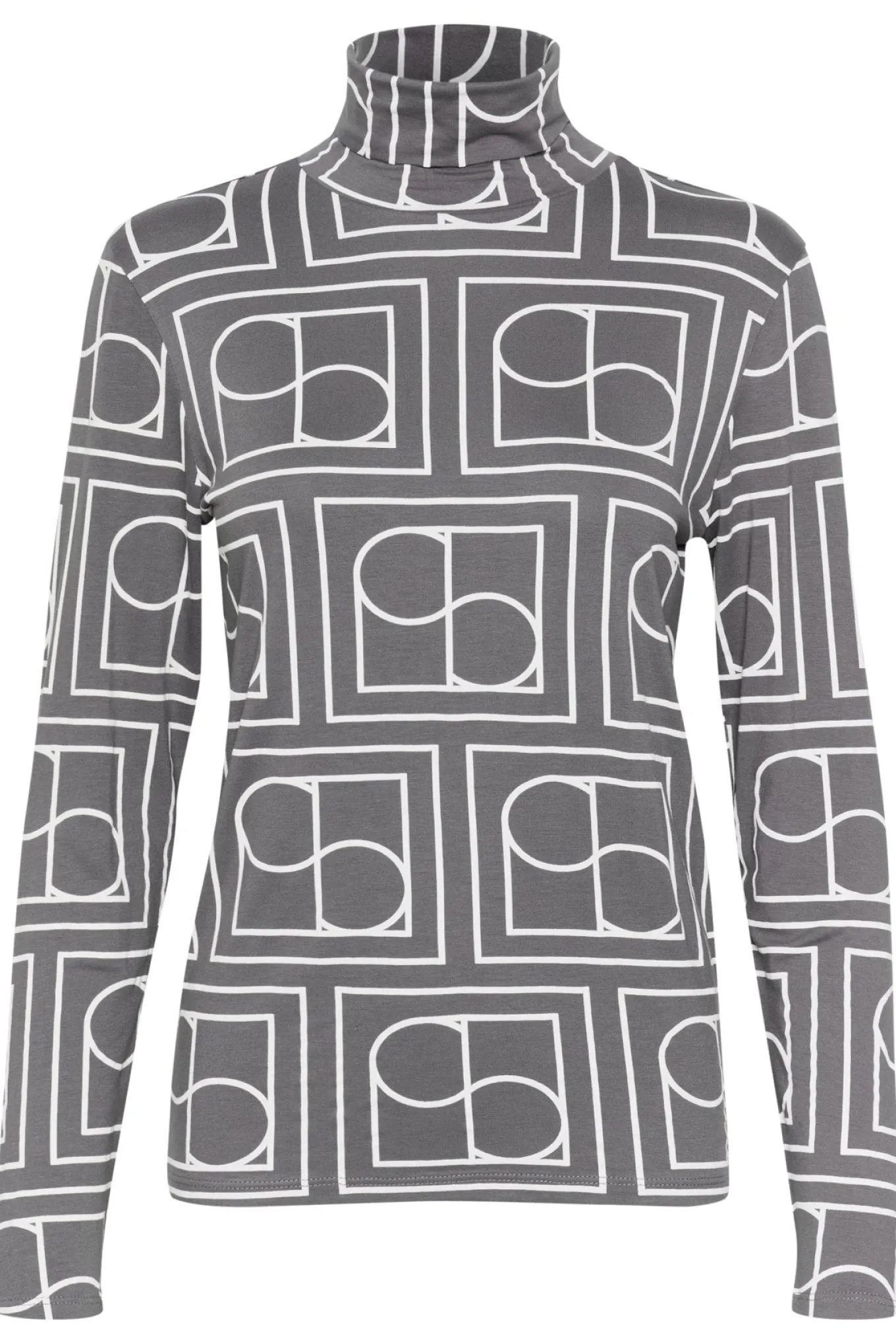 SLHanadi Printed Rollneck LS Dark Gray w White Monogram 30405647