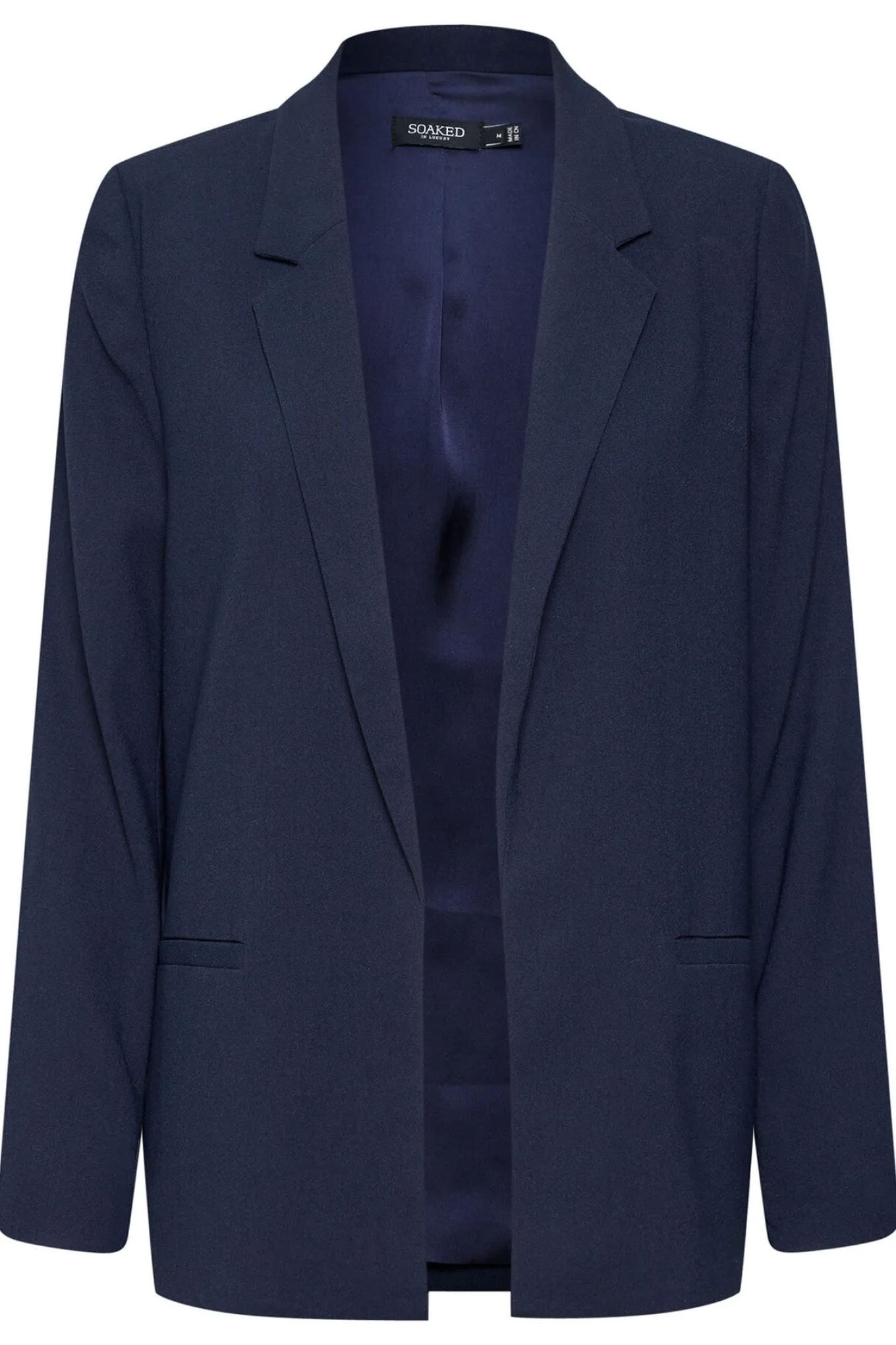 - OBS! Fjernlager. Levering kan blive forlænget med 1-2 dage, hvis varen ikke findes i vores butik lige nu.Flot blazer fra Soaked In Luxury med lange ærmer, en smal krave om halsen og en behagelig afslappet silhuet.