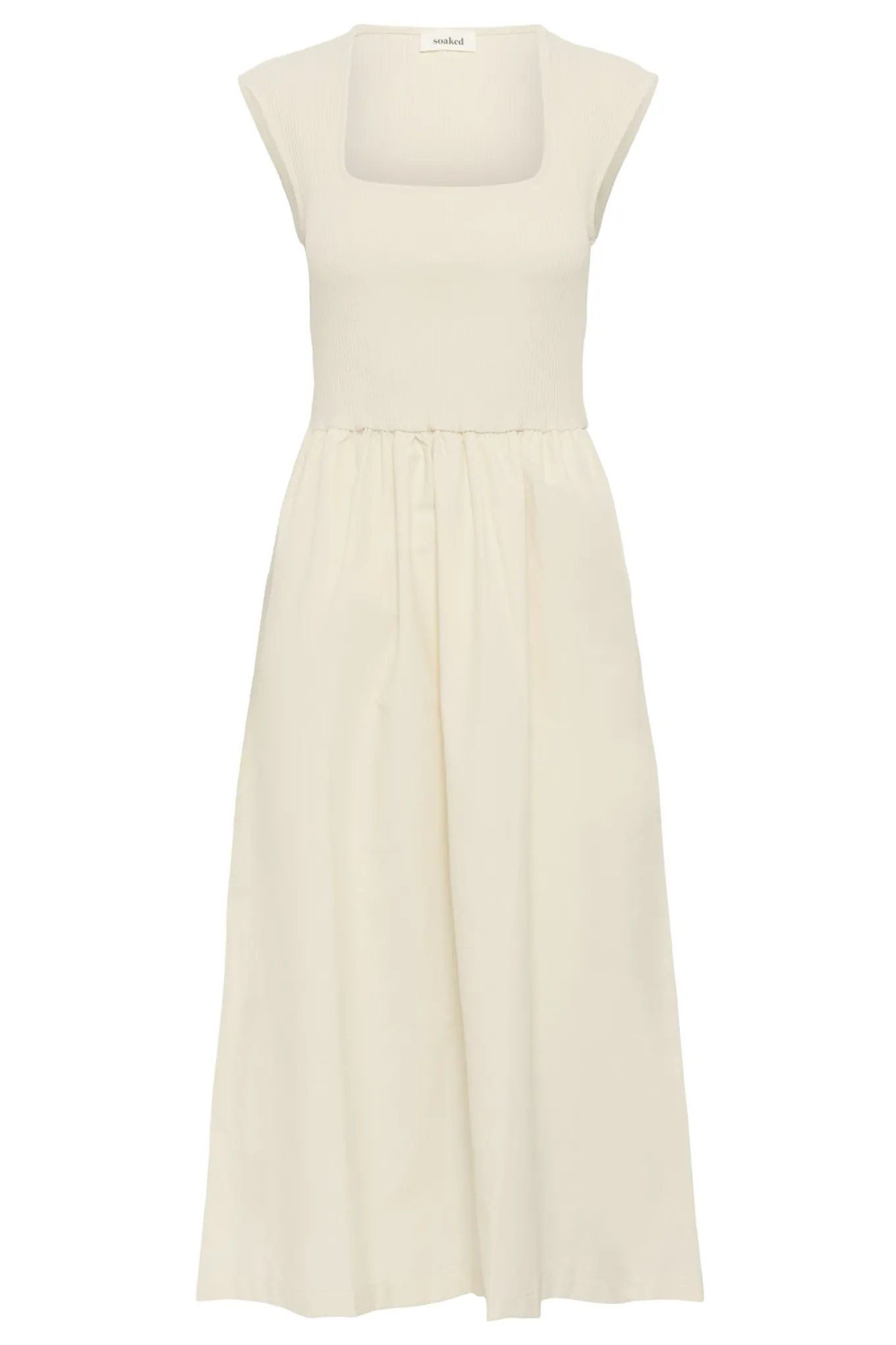 Denne smukke kjole fra Soaked in Luxury er perfekt til ethvert outfit. Den har en varm og blød oatmeal farve og er lavet af 95% bomuld og 5% elastan for en behagelig pasform.
