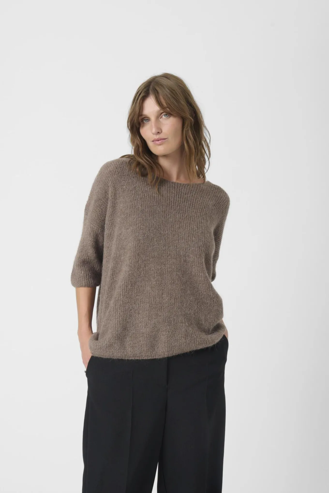 Denne smukke strik fra Soaked in Luxury er lavet i en varm walnut farve og består af en blanding af alpaca, uld, nylon og akryl. Perfekt til en klassisk og stilfuld vintergarderobe.