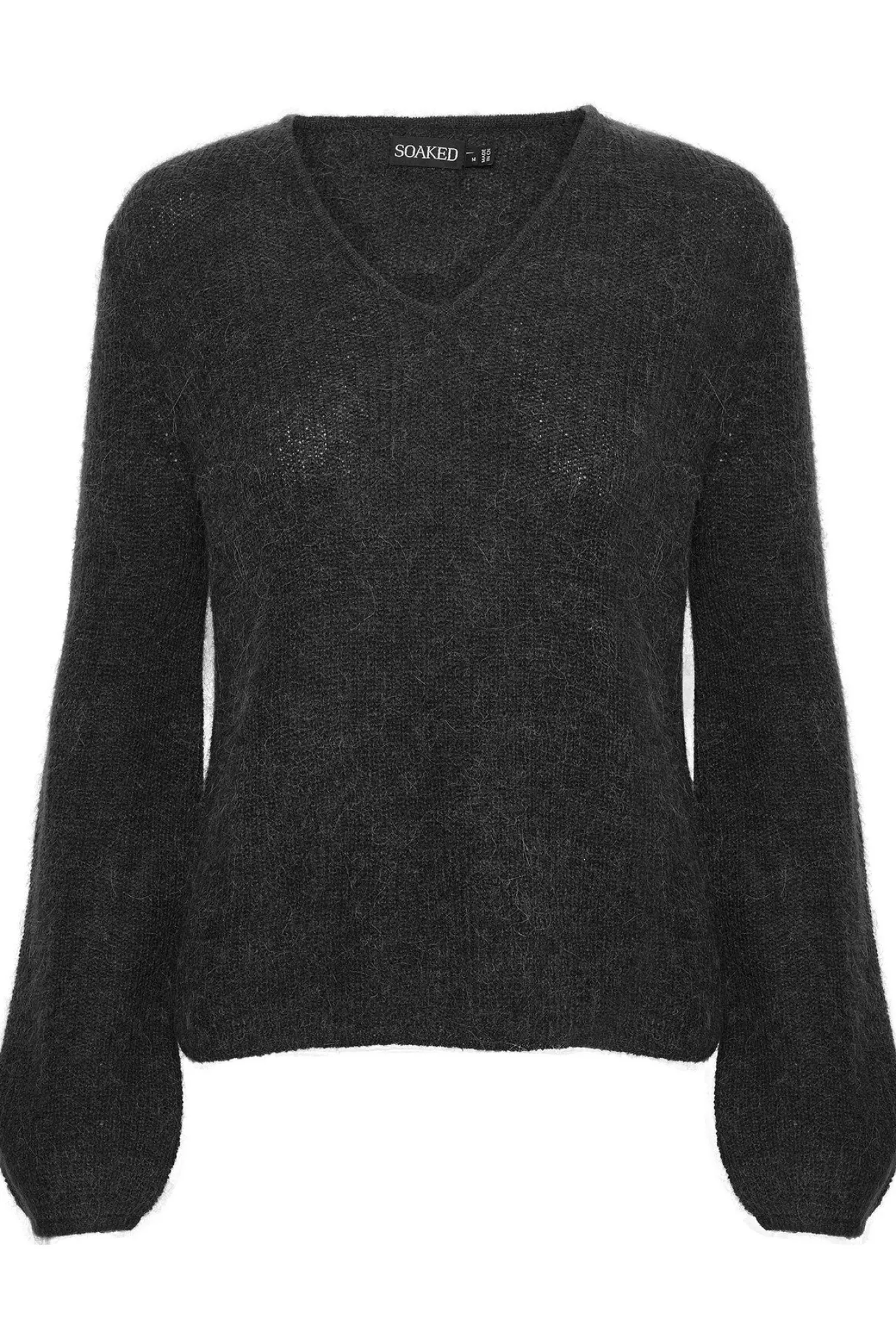 OBS! Fjernlager. Levering kan blive forlænget med 2-3 dage, hvis varen ikke findes i vores butik lige nu.Skøn cardigan fra Soaked In Luxury med lange pufærmer, v-hals og en dejlig blød kvalitet med et finstrikket mønster.