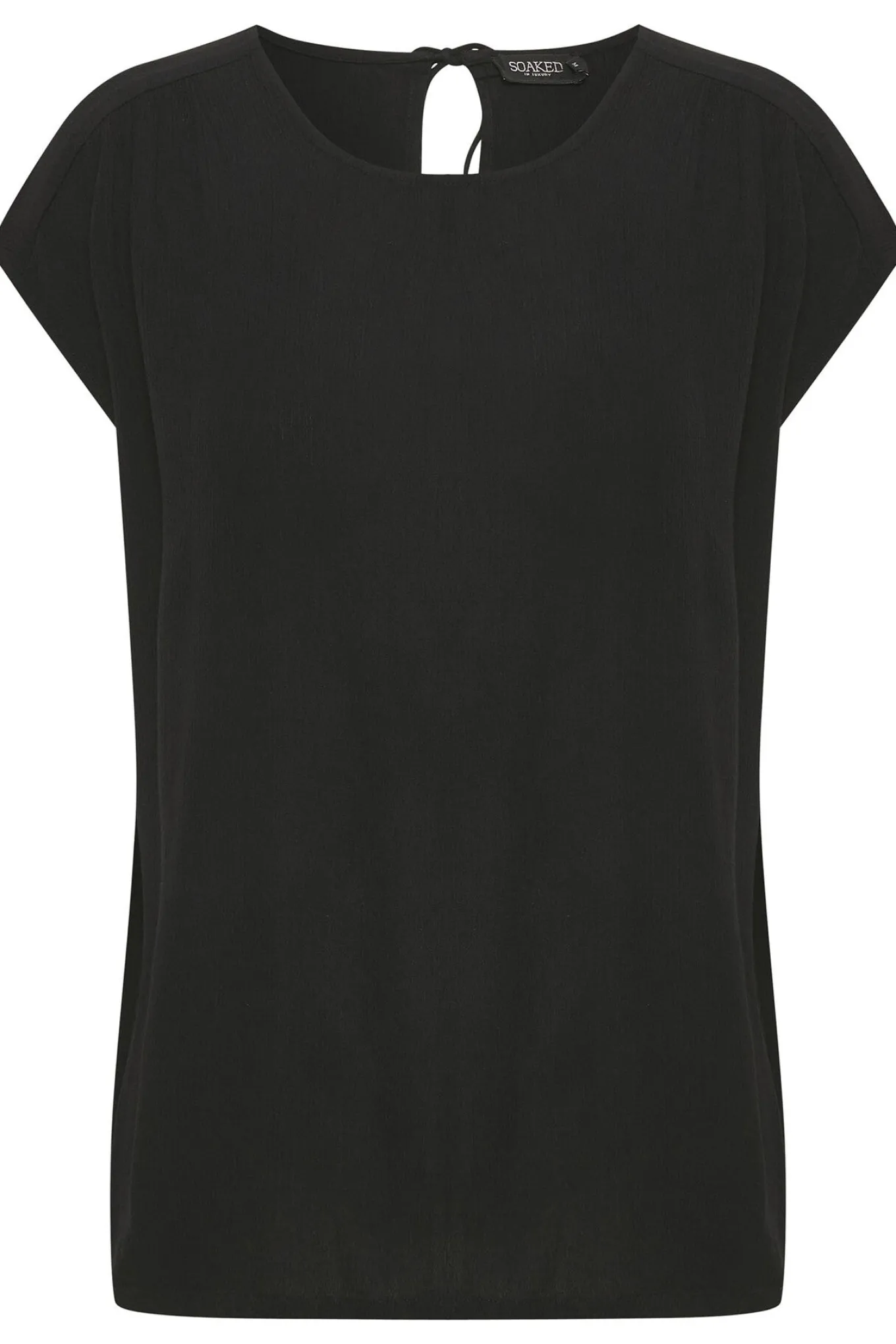 OBS! Fjernlager. Levering kan blive forlænget med 1-2 dage, hvis varen ikke findes i vores butik lige nu.Flot top fra Soaked In Luxury med små ærmer, rund hals der bindes i nakken med en lille bindesnor og en løstsiddende silhuet.