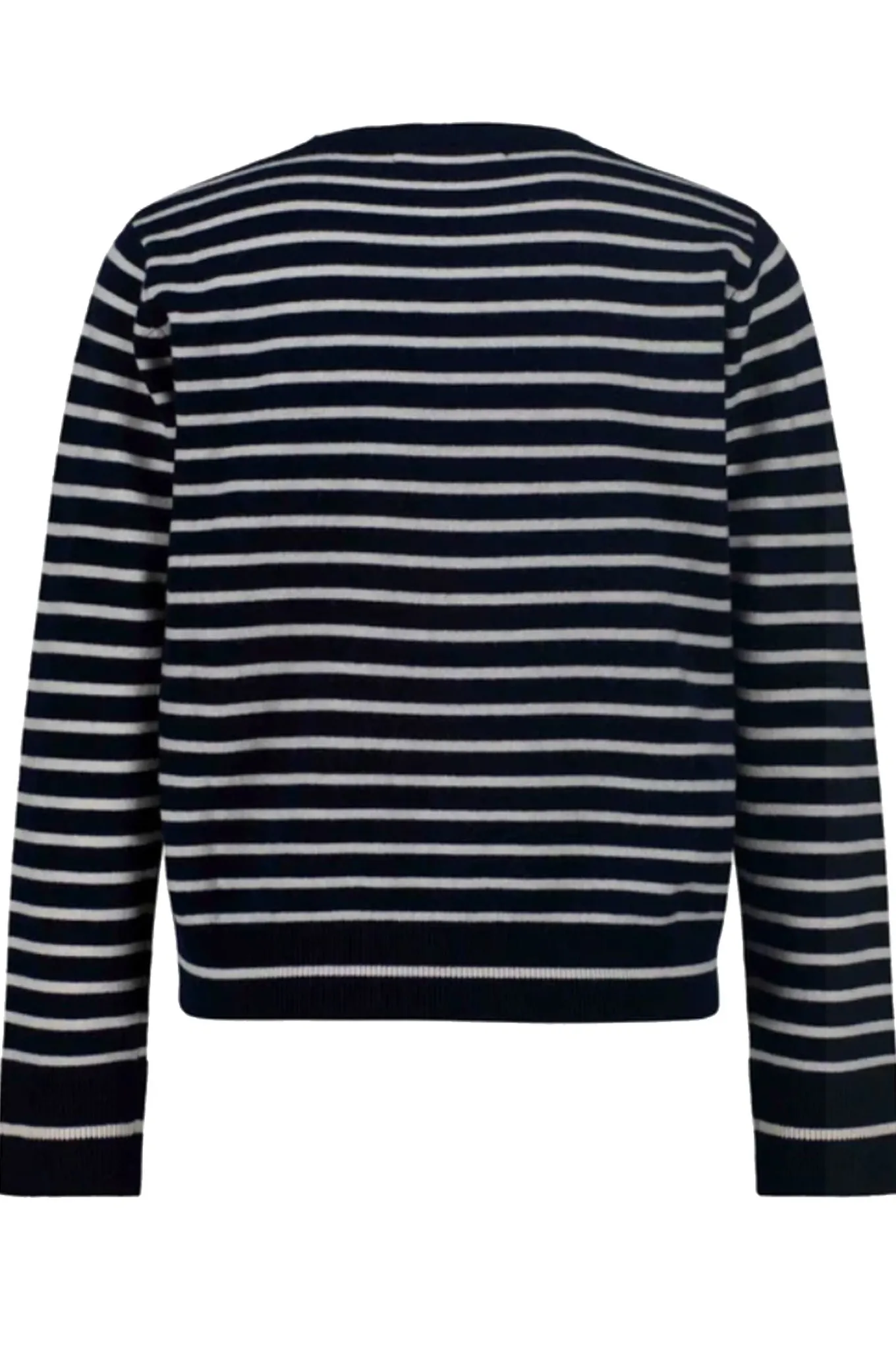 Blød cardigan fra Sofie Schnoor med lange ærmer, rund hals og brede ribkanter.Cardiganen har også et fint stribet mønster og knaplukning langs fronten.