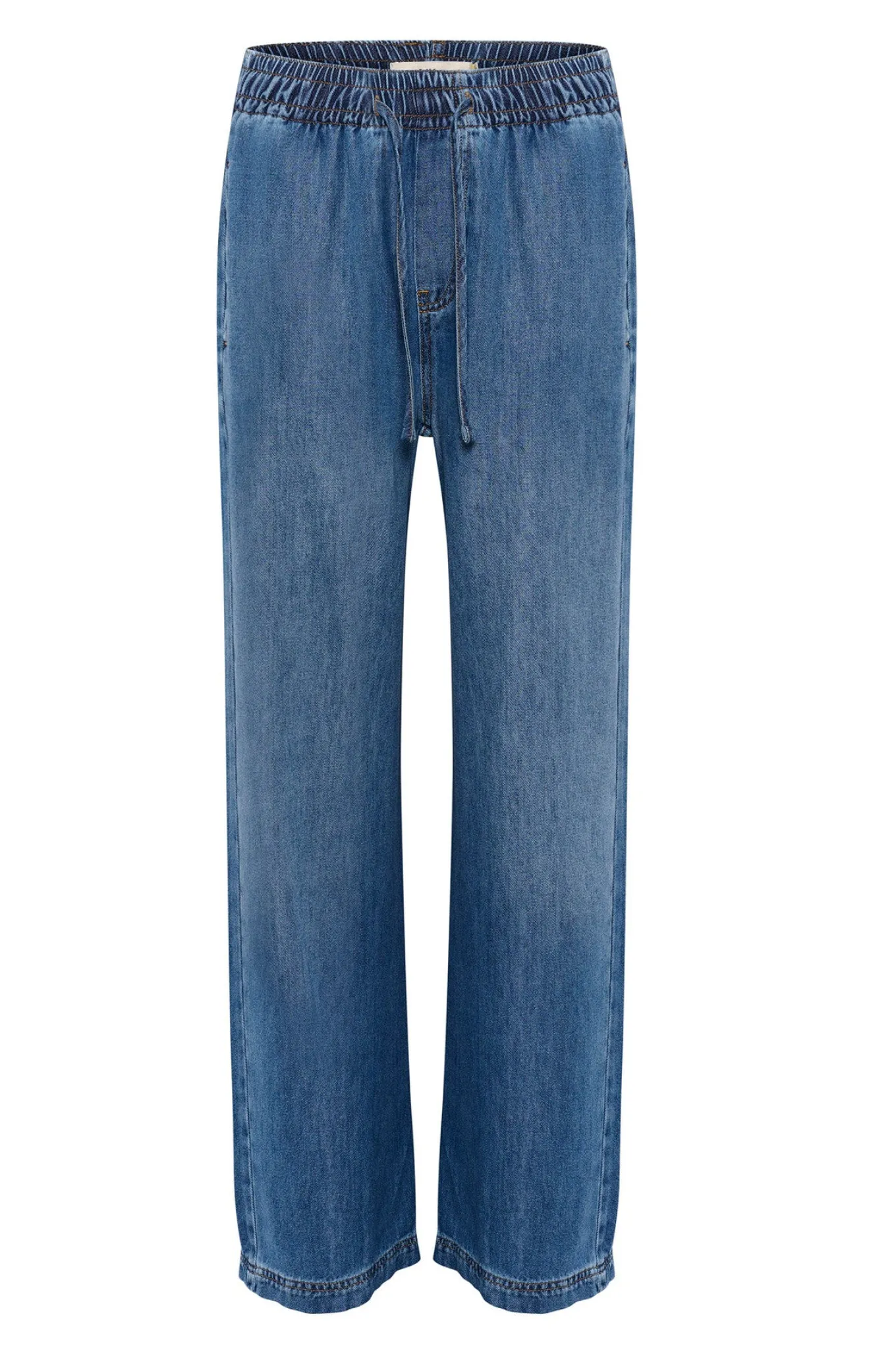 OBS! Fjernlager. Levering kan blive forlænget med 2-3 dage, hvis varen ikke findes i vores butik lige nu.Skønne bukser fra InWear med en bred elastikkant i taljen, et straight leg snit og en afslappet silhuet.