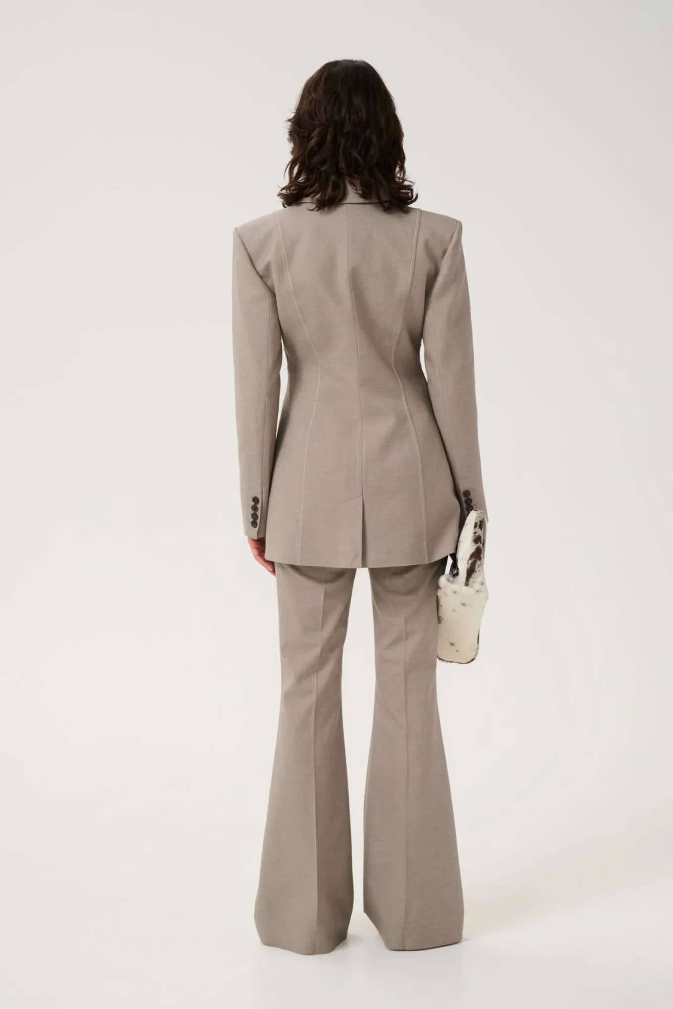 - Kvalitet: 54% polyester, 24% viskose, 20% uld, 2% elasthan