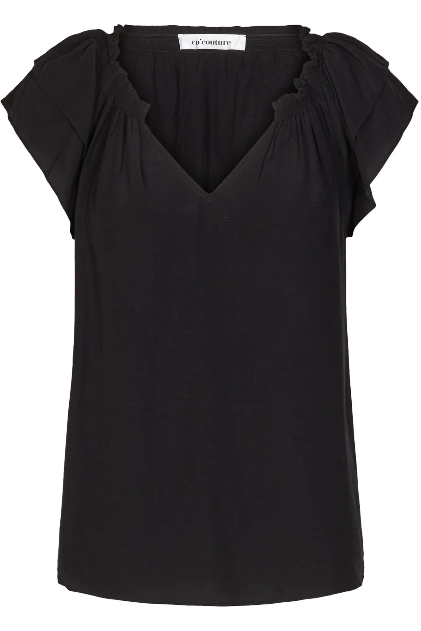 OBS! Fjernlager. Levering kan blive forlænget med 1-2 dage, hvis varen ikke findes i vores butik lige nu.Co’coutures klassiske sunrise top med flotte korte ærmer, v-hals og en lækker blød kvalitet.