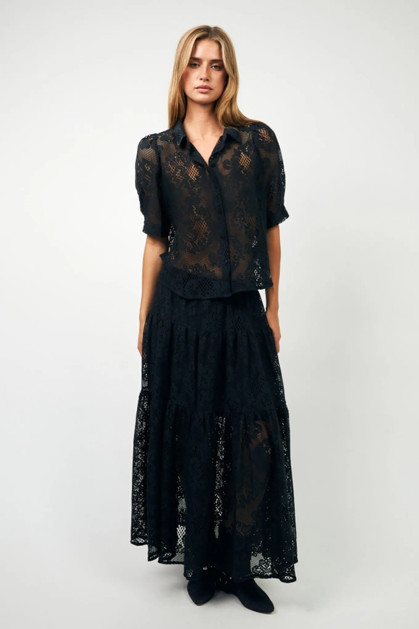 Skab et klassisk og feminint udtryk med denne smukke, blonde maxi nederdel fra Lollys Laundry. Fremstillet i en blanding af blød bomuld og polyester.
