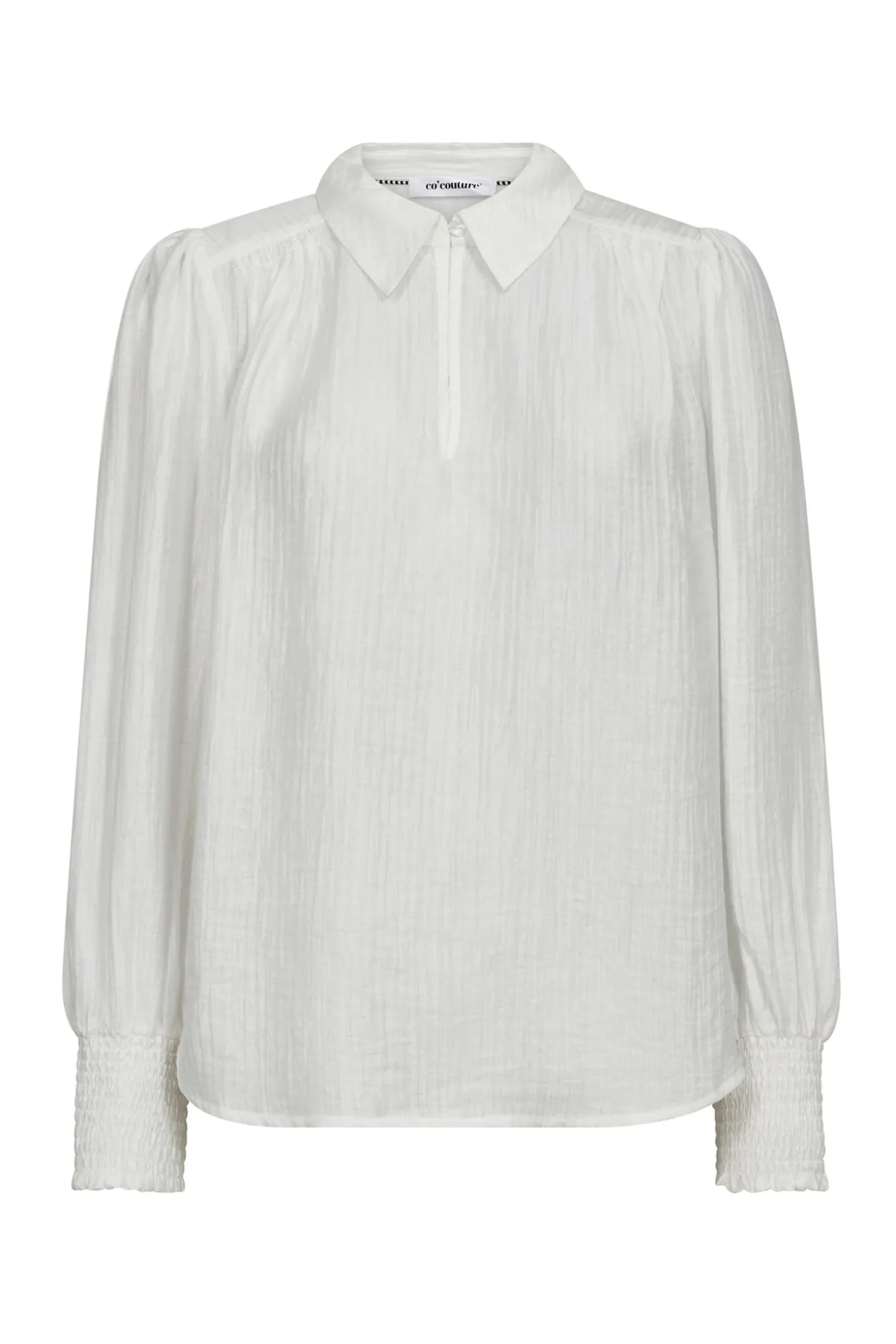 Denne bluse fra CO’COUTURE er et must-have i garderoben. Den hvide farve og blandingen af viskose, lyocell og bomuld giver et let og luksuriøst udtryk. Perfekt til enhver lejlighed.
