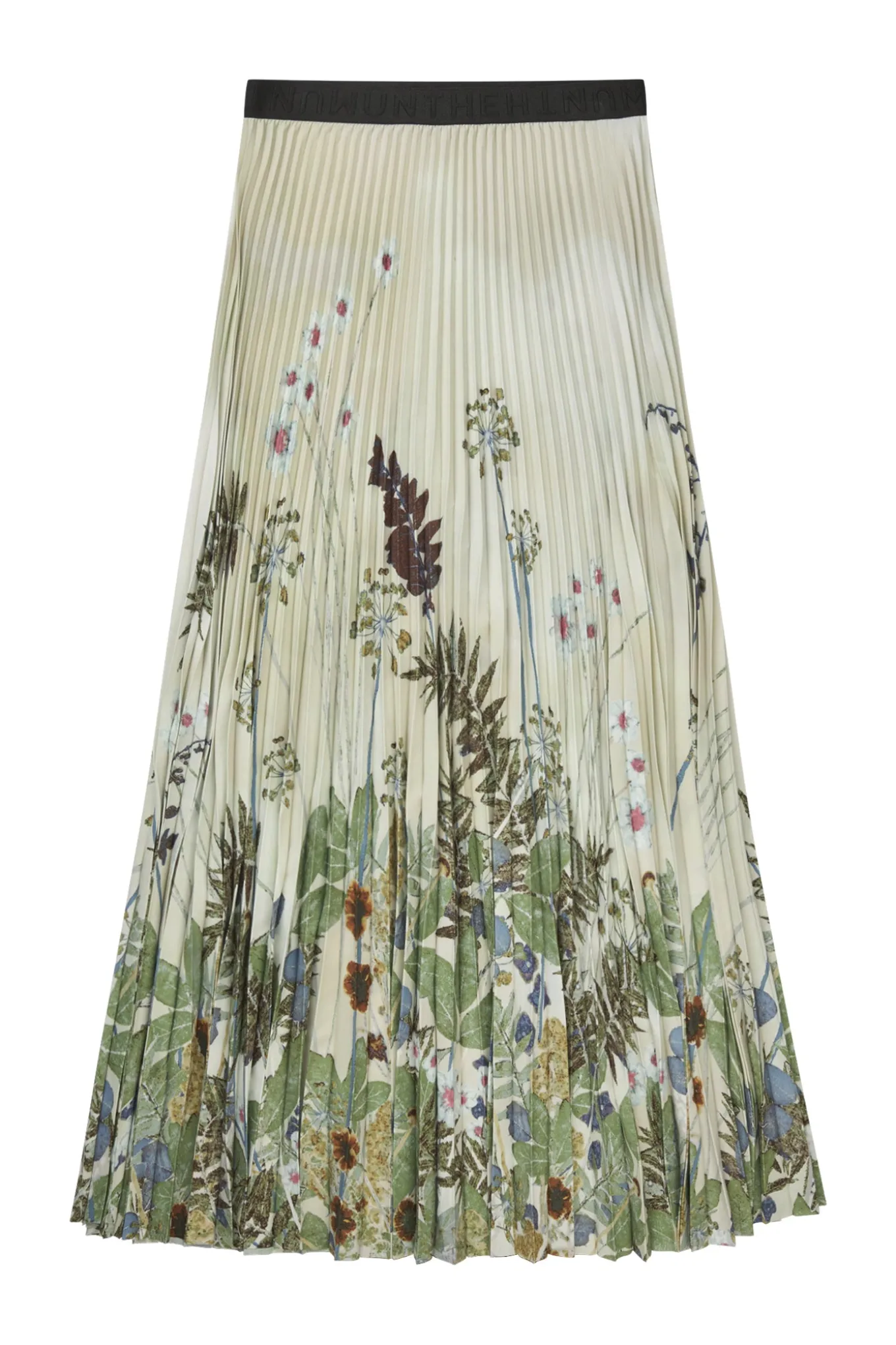 Omfavn bæredygtighed og stil med denne genanvendte polyester nederdel fra Munthe. Den creme farve og unikke print giver et elegant touch til ethvert outfit.
