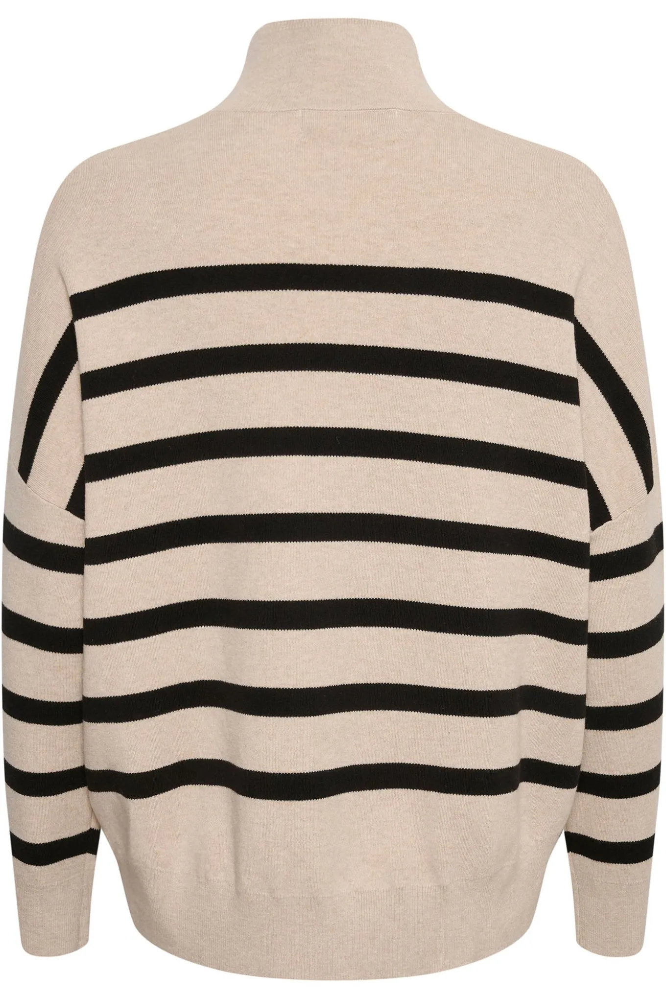 Lækker strik fra InWear med lange ærmer og høj hals. Strikken har også en fantastisk dejlig kvalitet der falder smukt langs kroppen og et fint stribet mønster der står i flot kontrast til den neutrale baggrund.