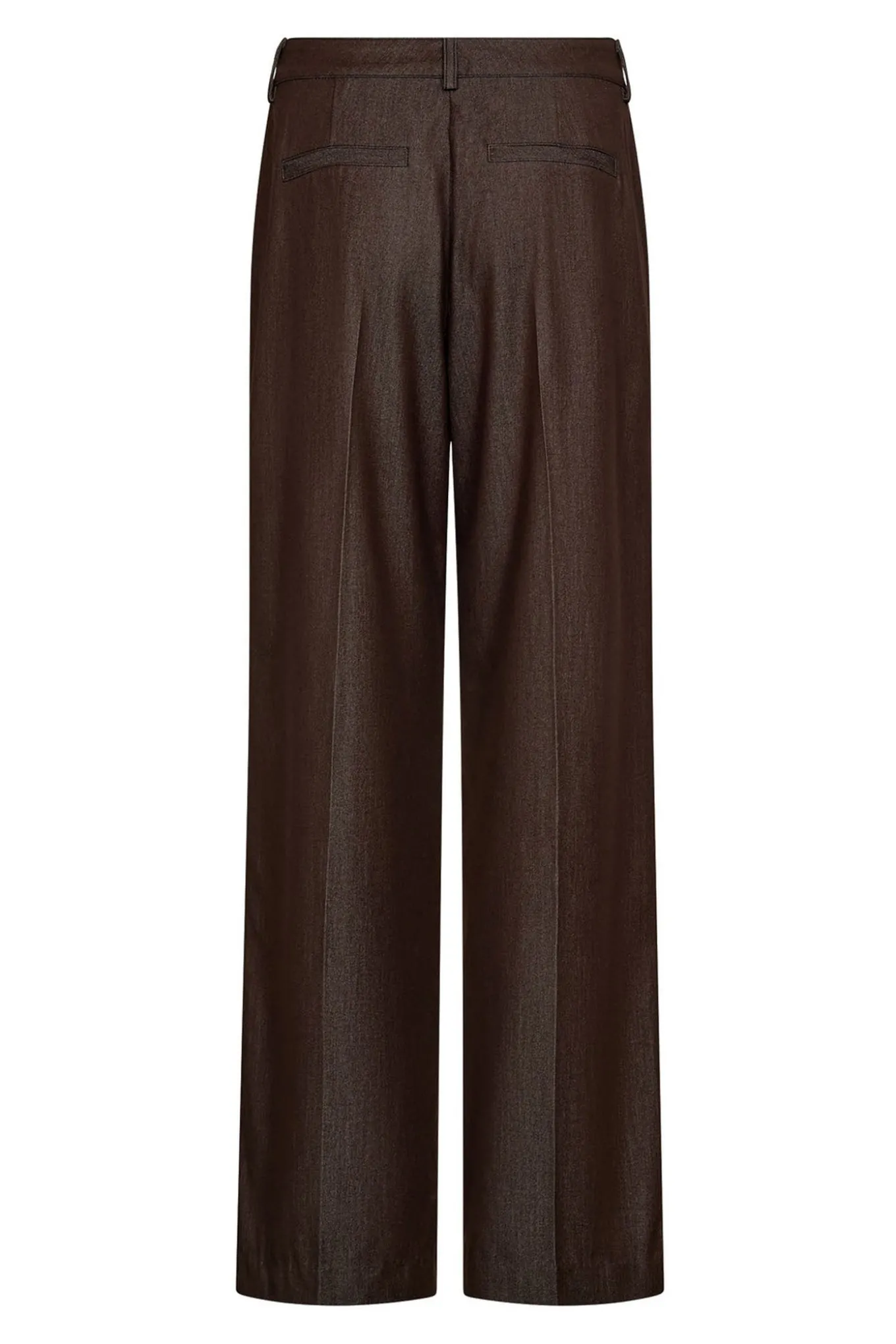 Skab et elegant og tidløst look med disse bukser fra CO’COUTURE i en dyb mørkebrun farve. De er lavet af en blanding af bomuld, polyester og elastan og er perfekte til enhver lejlighed.