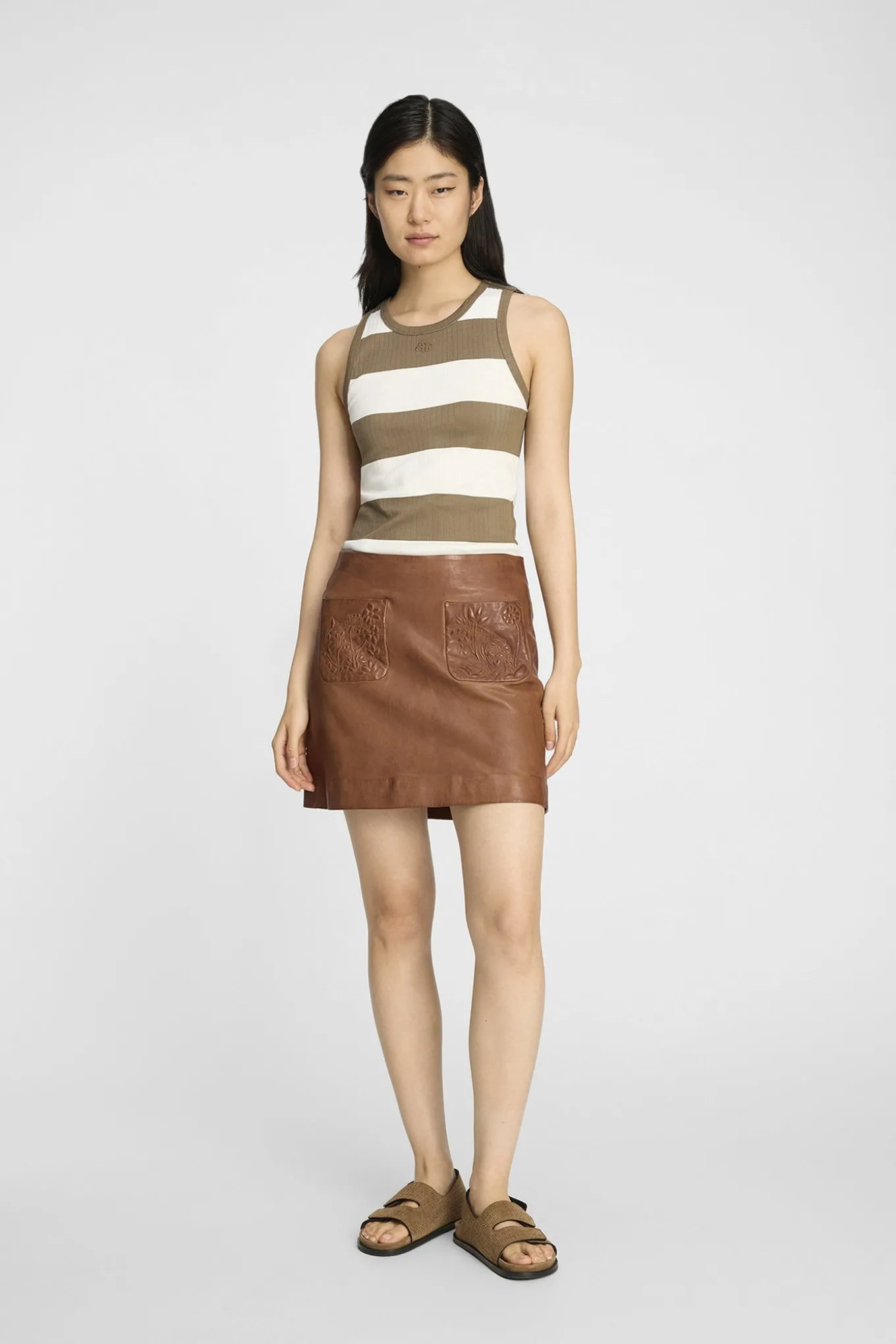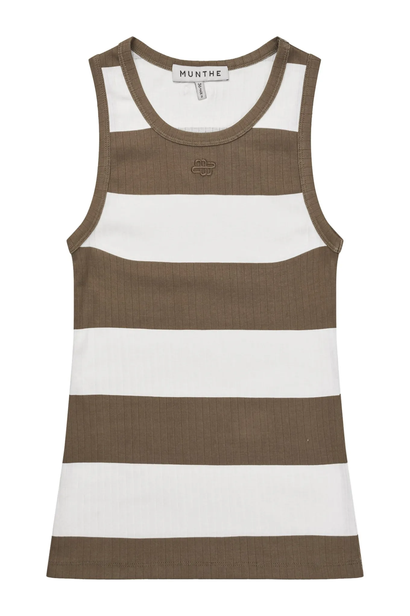 Denne økologiske top fra Munthe er perfekt til enhver lejlighed. Den er lavet af 100% bomuld og har et flot strikket striber design i farven StripeMocc.