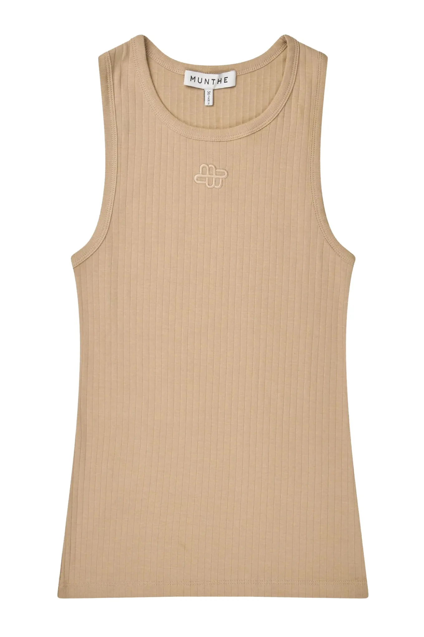 OBS! Fjernlager. Levering kan blive forlænget med 2-3 dage, hvis varen ikke findes i vores butik lige nu.Fin enkel top fra Munthe med rund hals og et lille broderet logo på brystet.