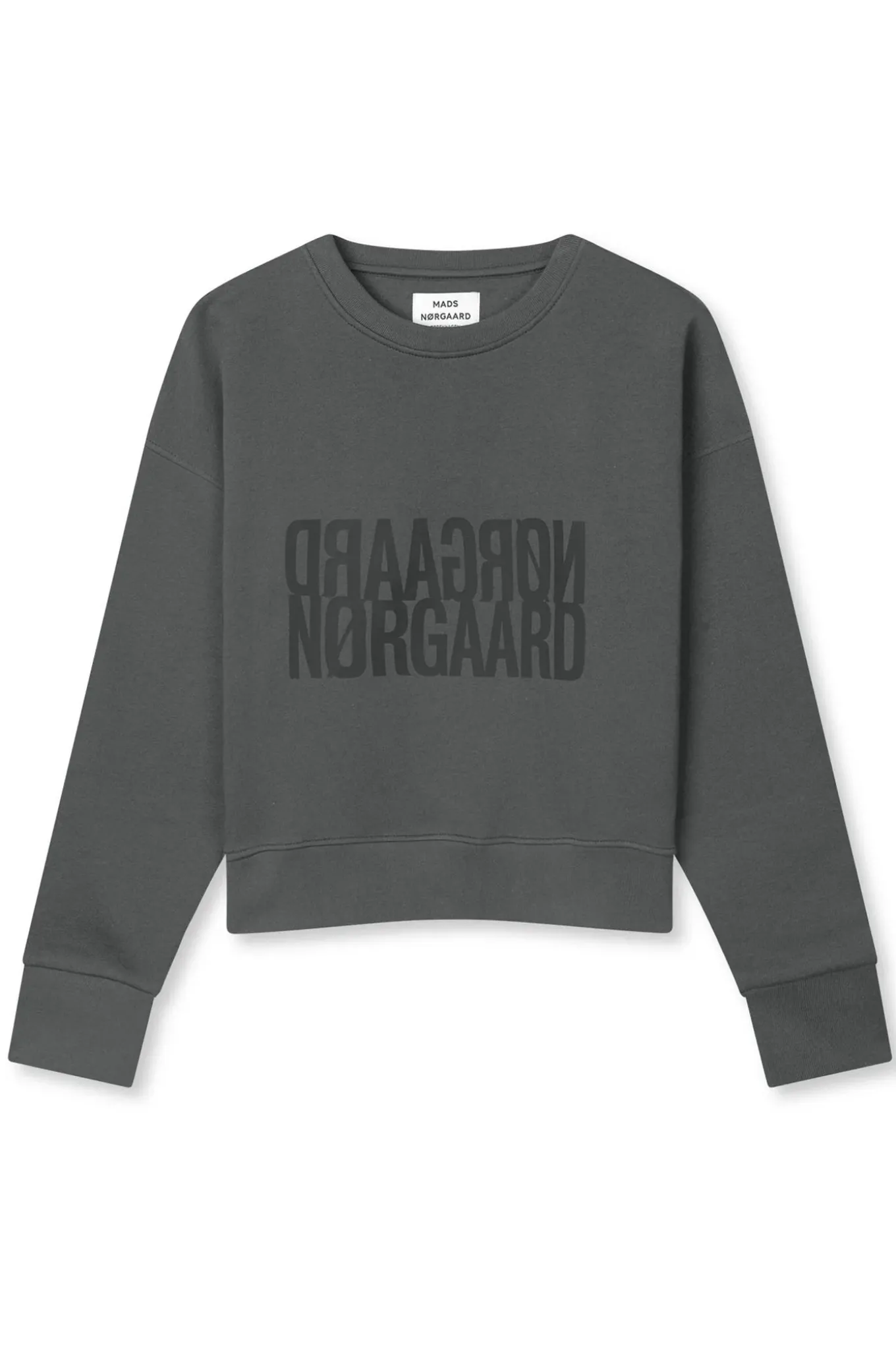Denne sweatshirt fra Mads Nørgaard er et must-have i garderoben. Den er lavet af 100% økologisk bomuld og har en flot asfaltgrå farve. Perfekt til et tidløst og bæredygtigt look.