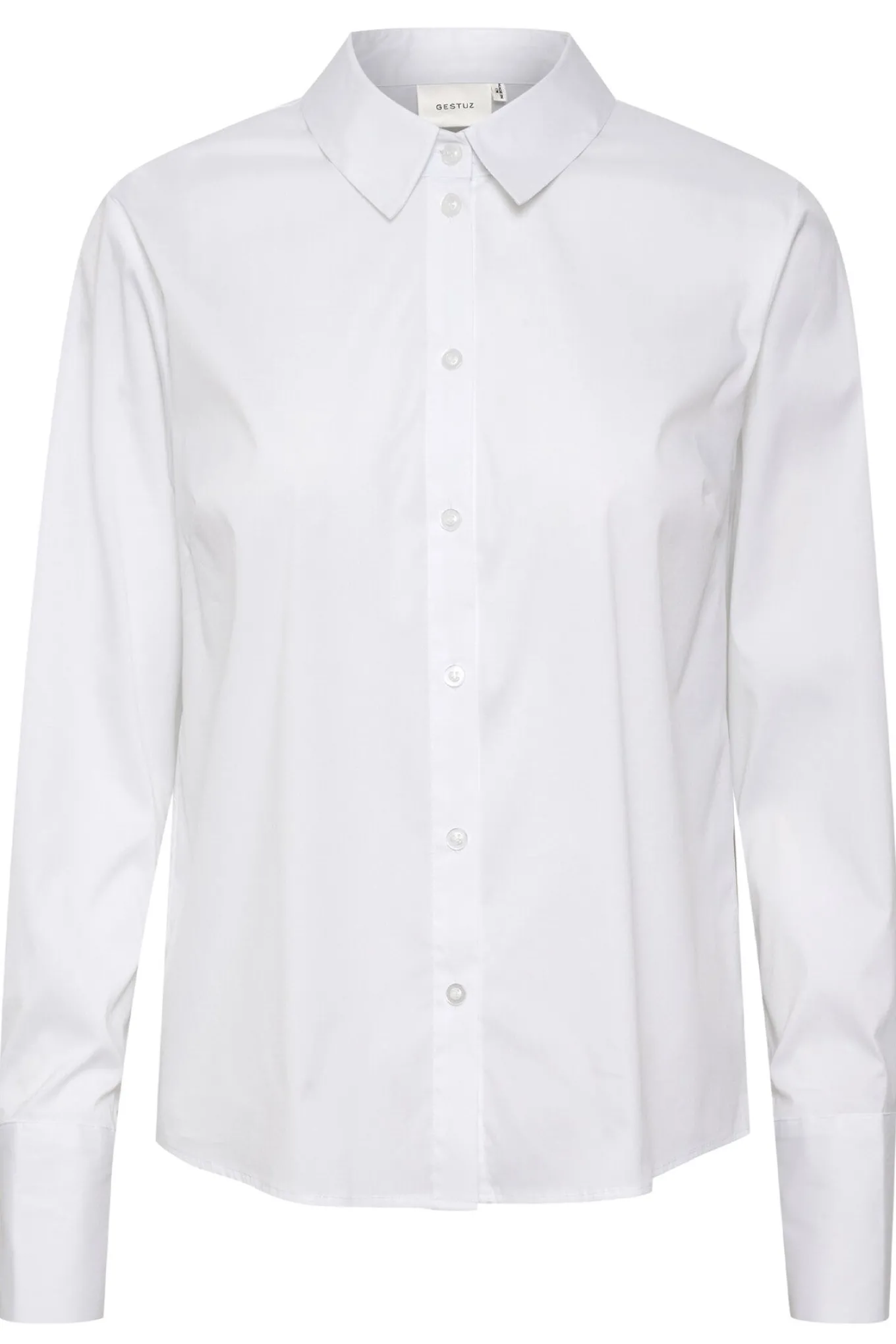 OBS! Fjernlager. Levering kan blive forlænget med 1-2 dage, hvis varen ikke findes i vores butik lige nu.Klassisk skjorte fra Gestuz med lange ærmer, skjortekrave i halsen og knaplukning i fronten.
