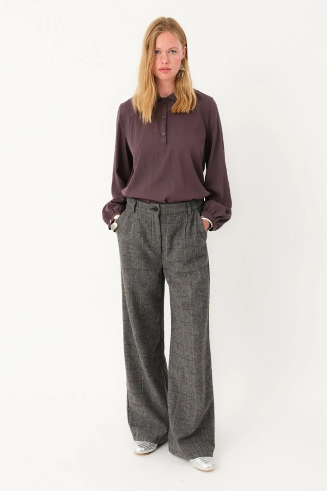 De lækre bukser i en klassisk grå farve er perfekte til enhver lejlighed. Med en blanding af polyester og uld er de både stilfulde og komfortable. Et must-have fra Lollys Laundry.