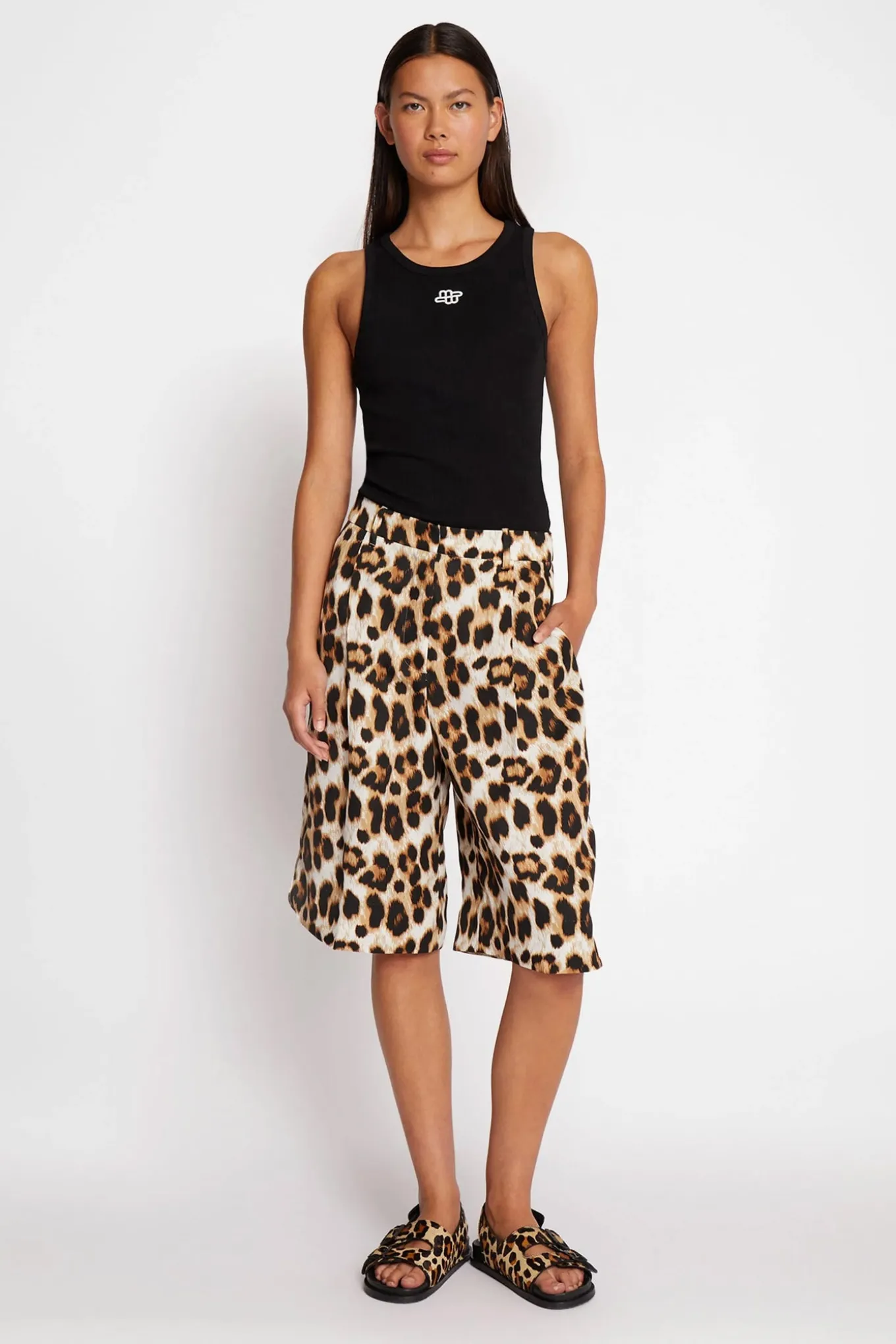 OBS! Fjernlager. Levering kan blive forlænget med 2-3 dage, hvis varen ikke findes i vores butik lige nu.Super smarte knæ lange shorts fra Munthe med et elegant leo print, designet med læg og lommer. Disse shorts har bælte stropper i taljen og en flot kvalitet.