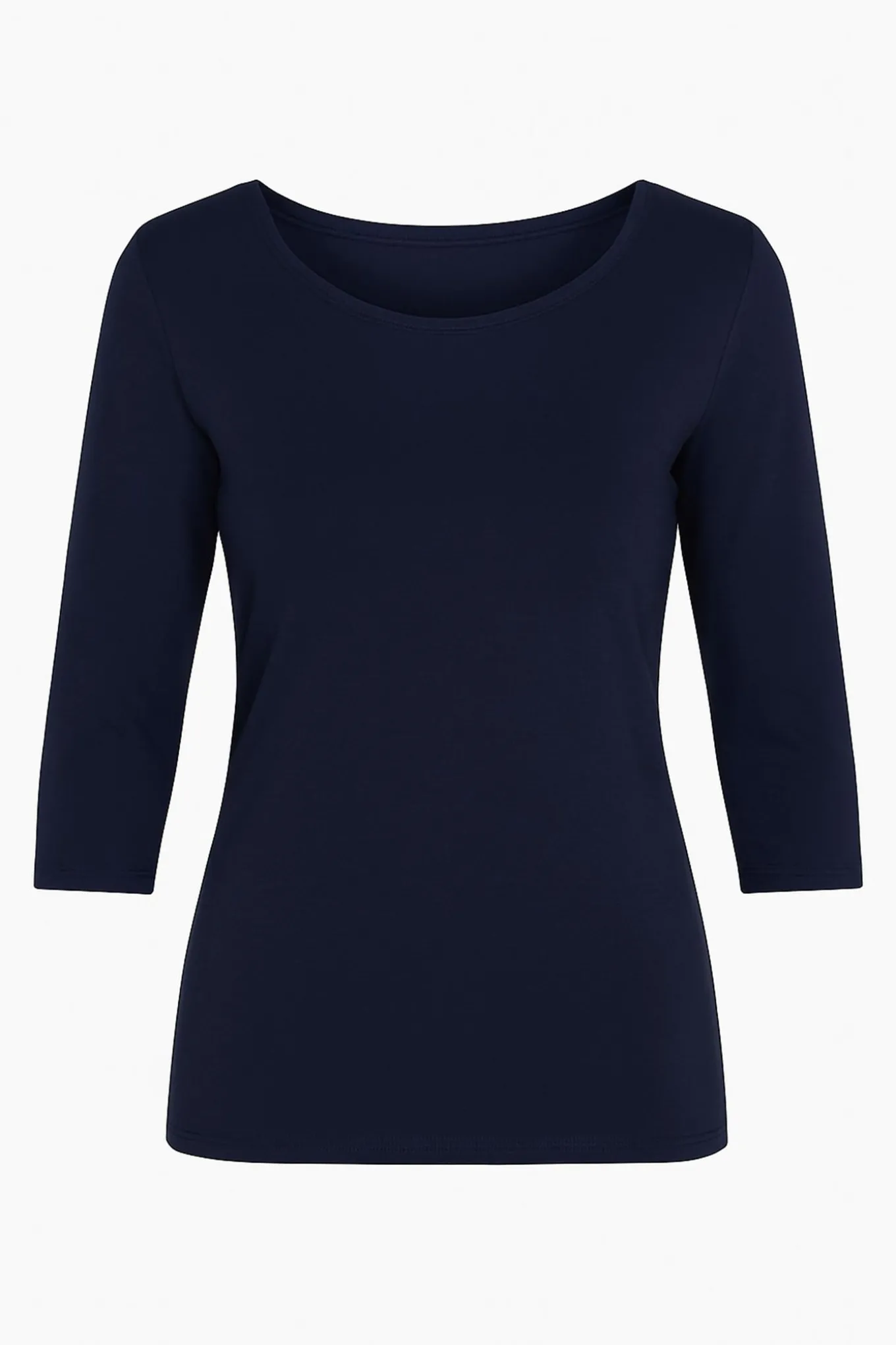 Levering kan blive forlænget med 1-2 dage, hvis varen ikke findes i vores butik lige nu.Basic bluse med 1/2 ærmer fra 2-Biz. Blusen har en rund hals og en tætsiddende pasform.