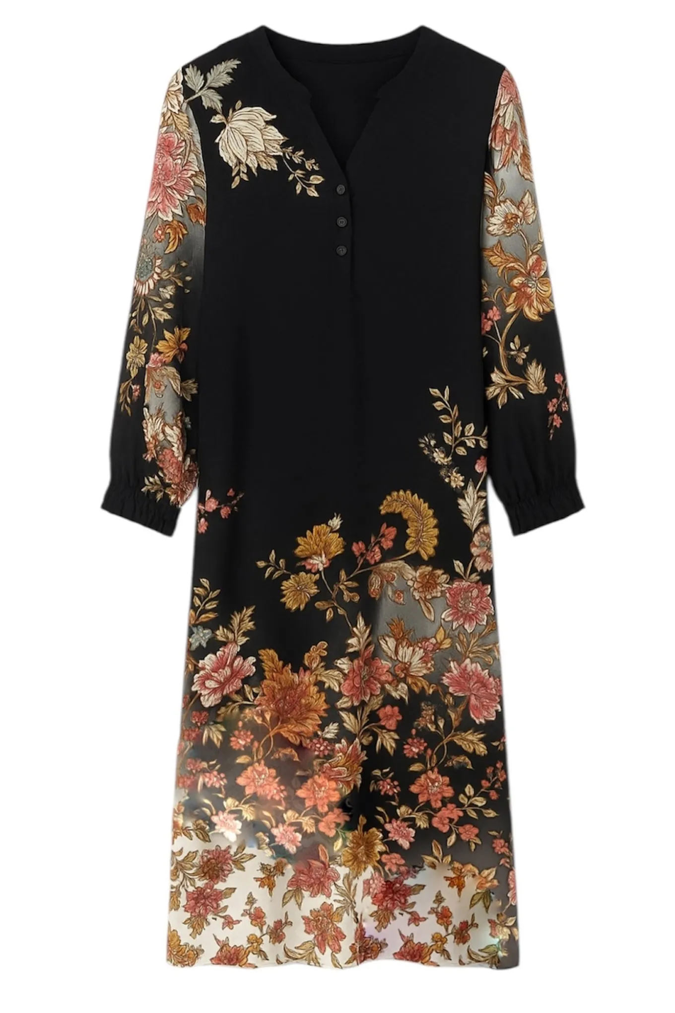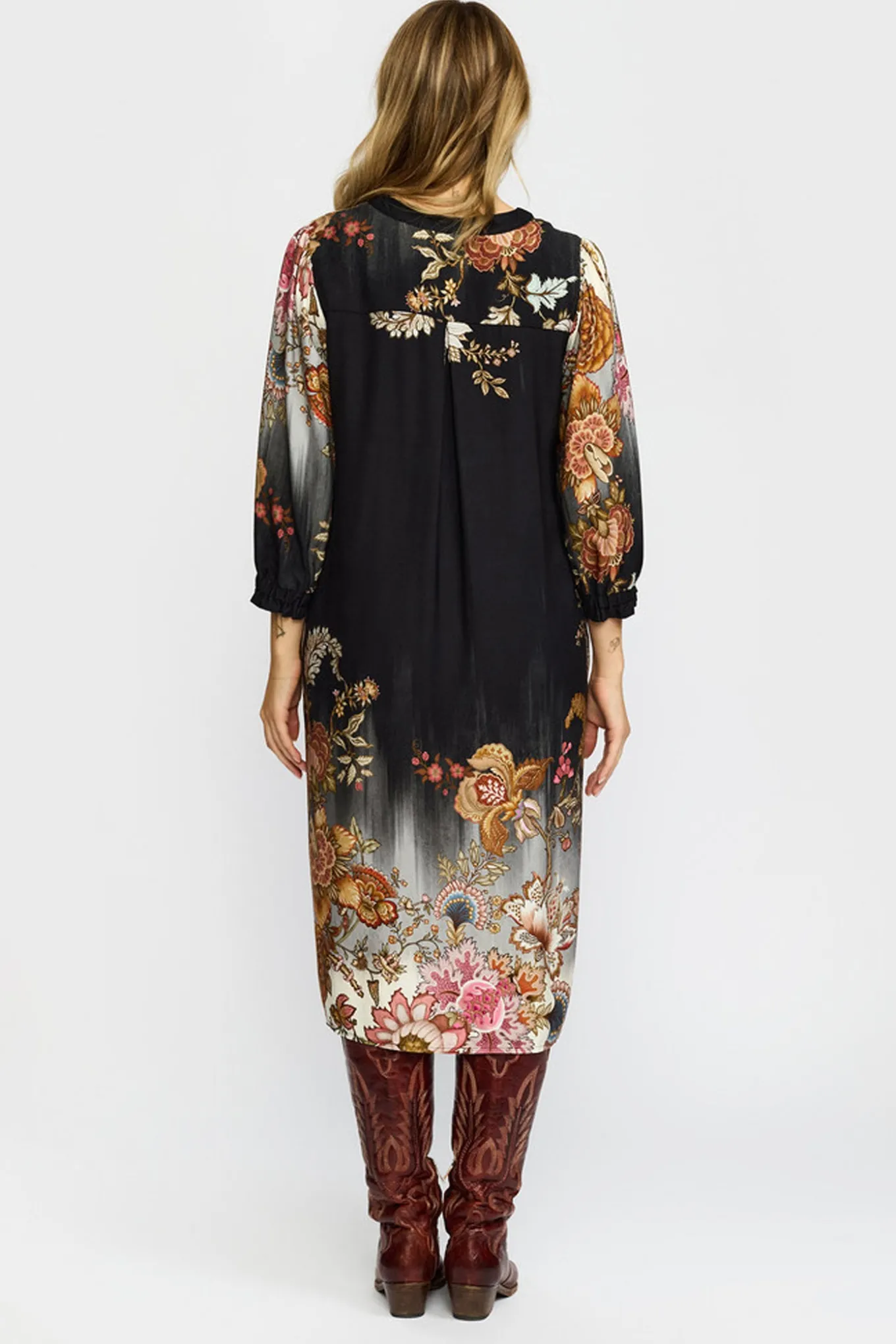 Få et sofistikeret og trendy look med denne elegante kjole fra 2-BIZ. Den er fremstillet i 100% Viscose Tensel og har et smukt mønster af sorte blomster. Perfekt til enhver lejlighed.