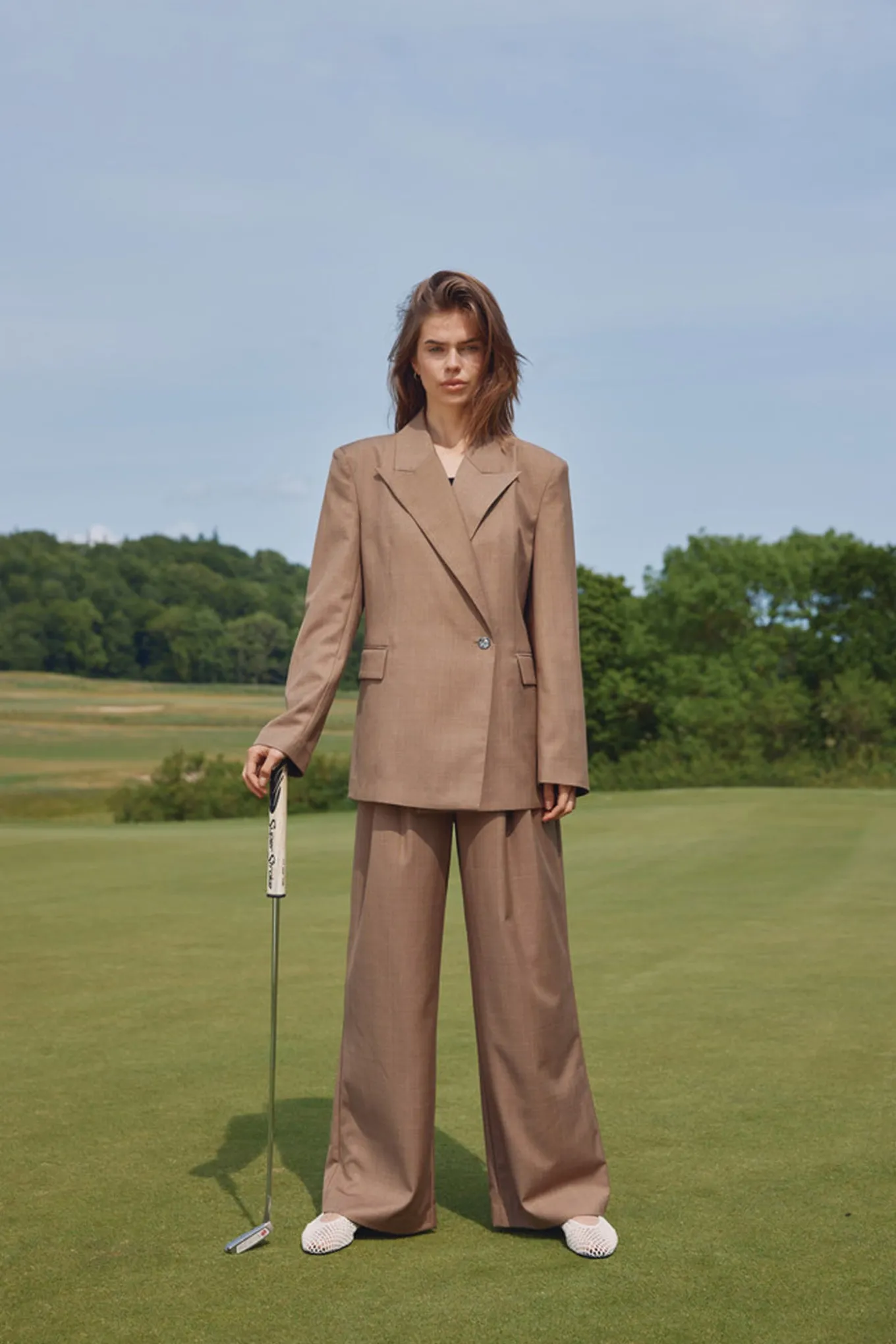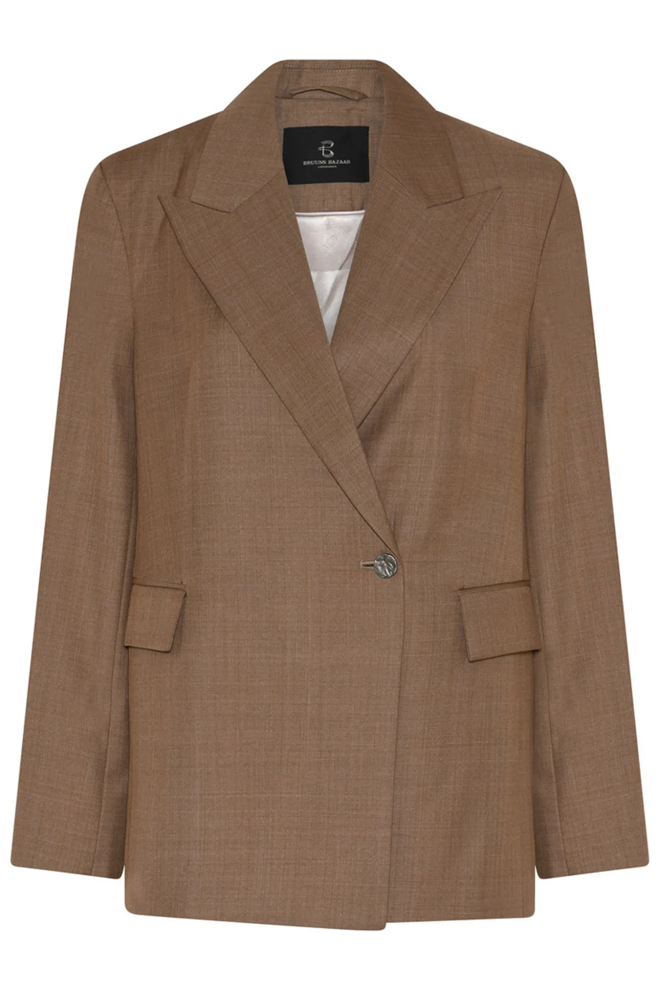 Opgrader din garderobe med denne elegante blazer i en flot brun meleret farve. Fremstillet af 80% genbrugspolyester og 20% viskose fra Bruuns Bazaar Women.