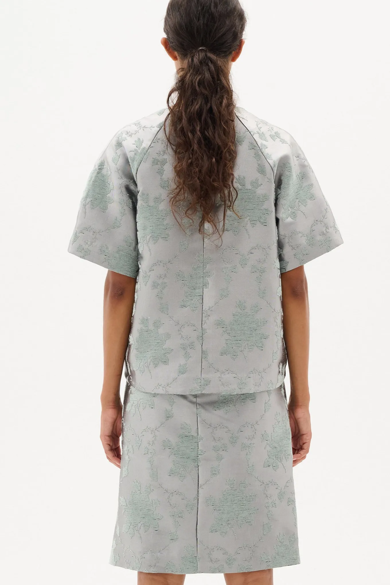 OBS! Fjernlager. Levering kan blive forlænget med 2-3 dage, hvis varen ikke findes i vores butik lige nu.Smuk bluse fra InWear med ½ lange ærmer, rund halsudskæring og den flotteste metalliske kvalitet.