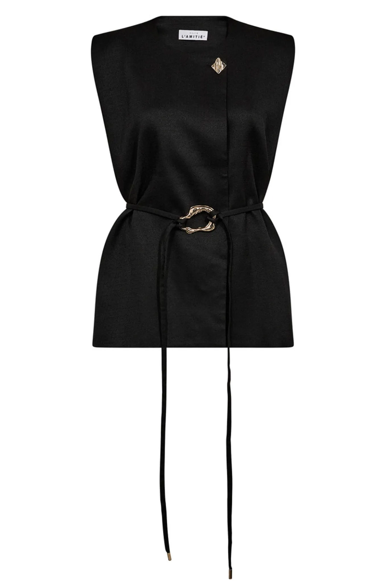 Denne elegante veste fra Haute L’Amitie er et must-have i garderoben. Den sorte farve og blandingen af polyester og elastan giver et sofistikeret og behageligt look. Perfekt til enhver lejlighed.