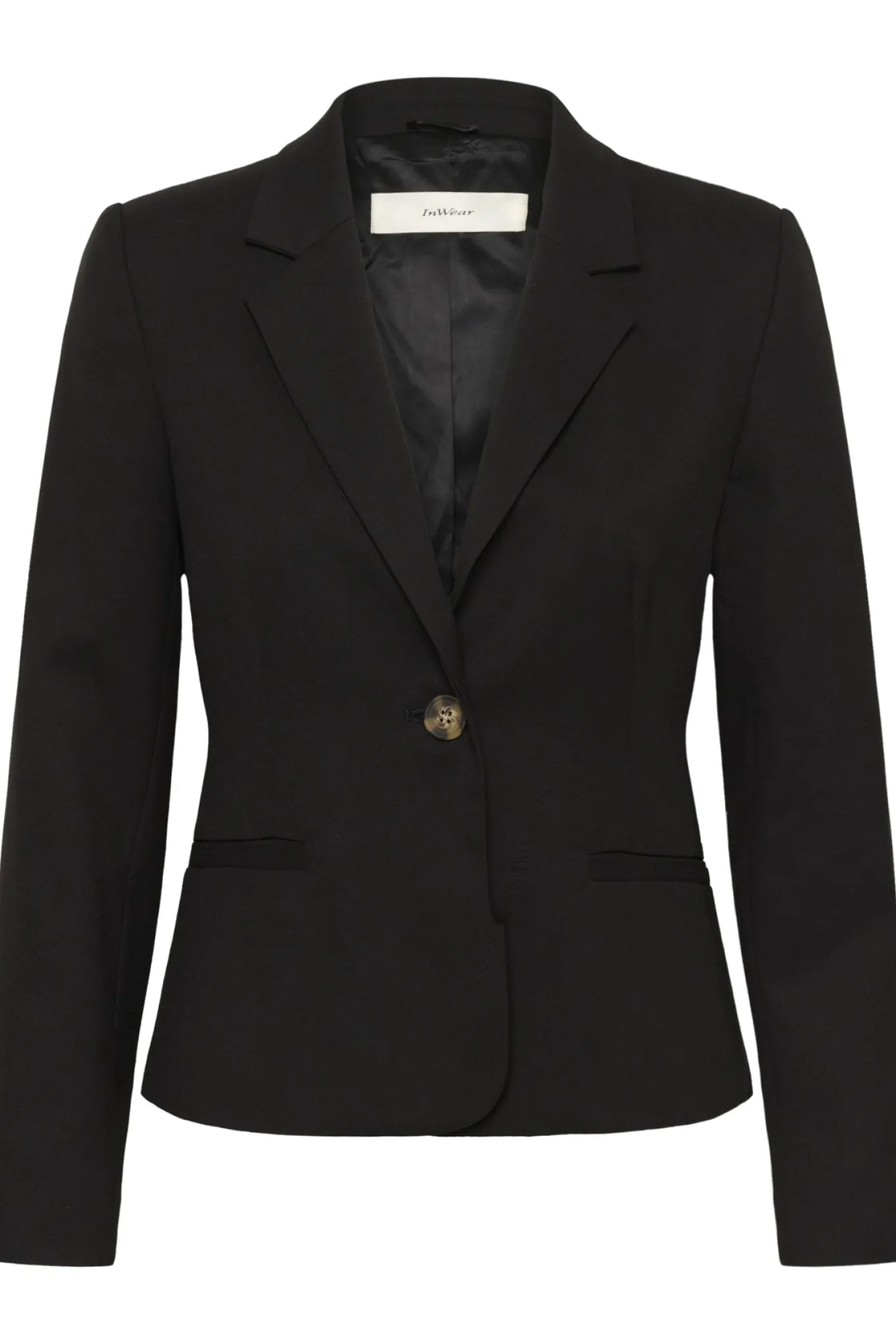Føl dig elegant og sofistikeret med denne klassiske blazer fra Inwear. Den er i en dyb sort farve og er lavet af et blødt og holdbart materiale bestående af 65% polyester, 33% viskose og 2% elastan. Perfekt til enhver lejlighed.